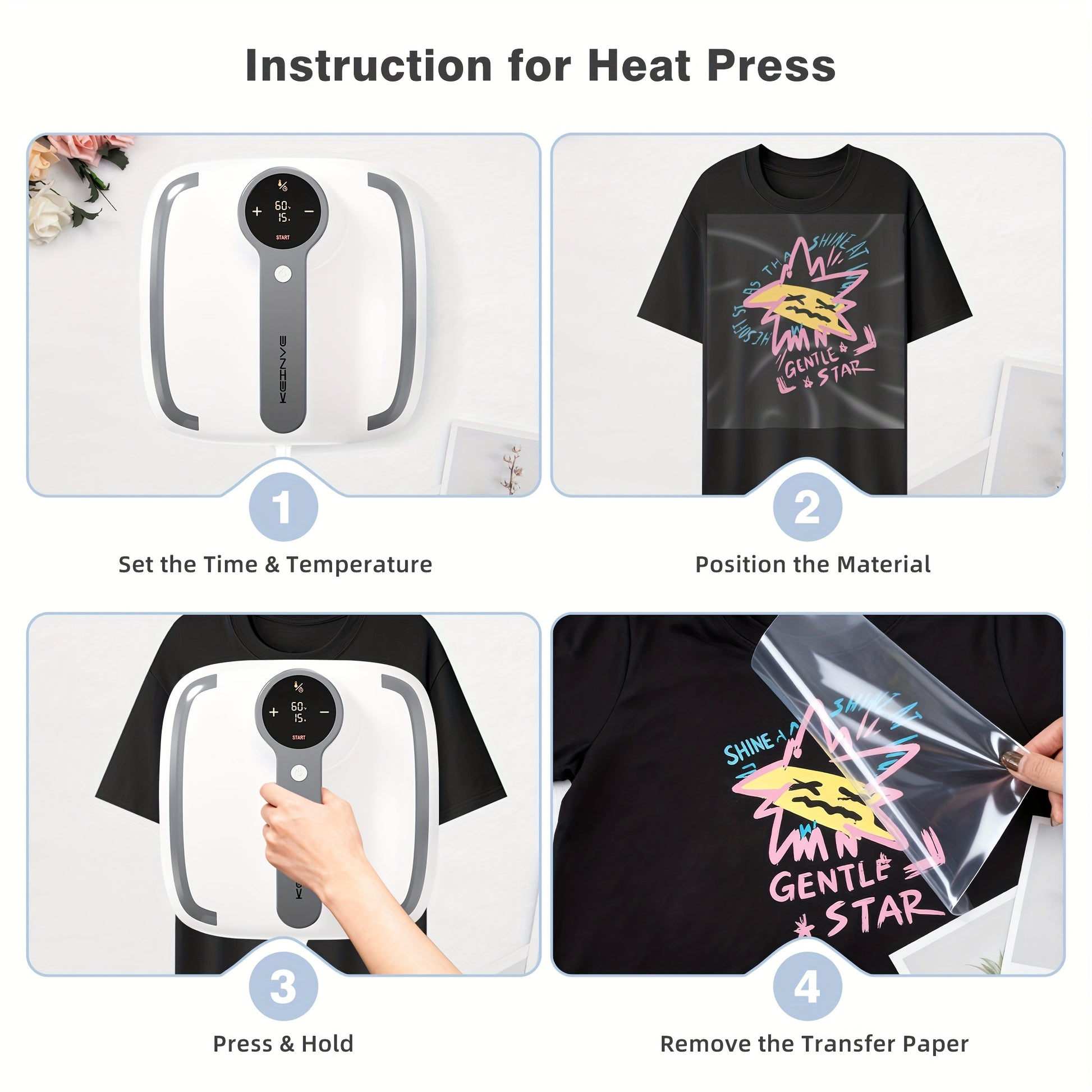 10X10 Inch Heat Transfer Press with Accurate Temperature Regulation, Suitable for T-Shirts, Bags, Hats, And Crafts, in Grey Color.