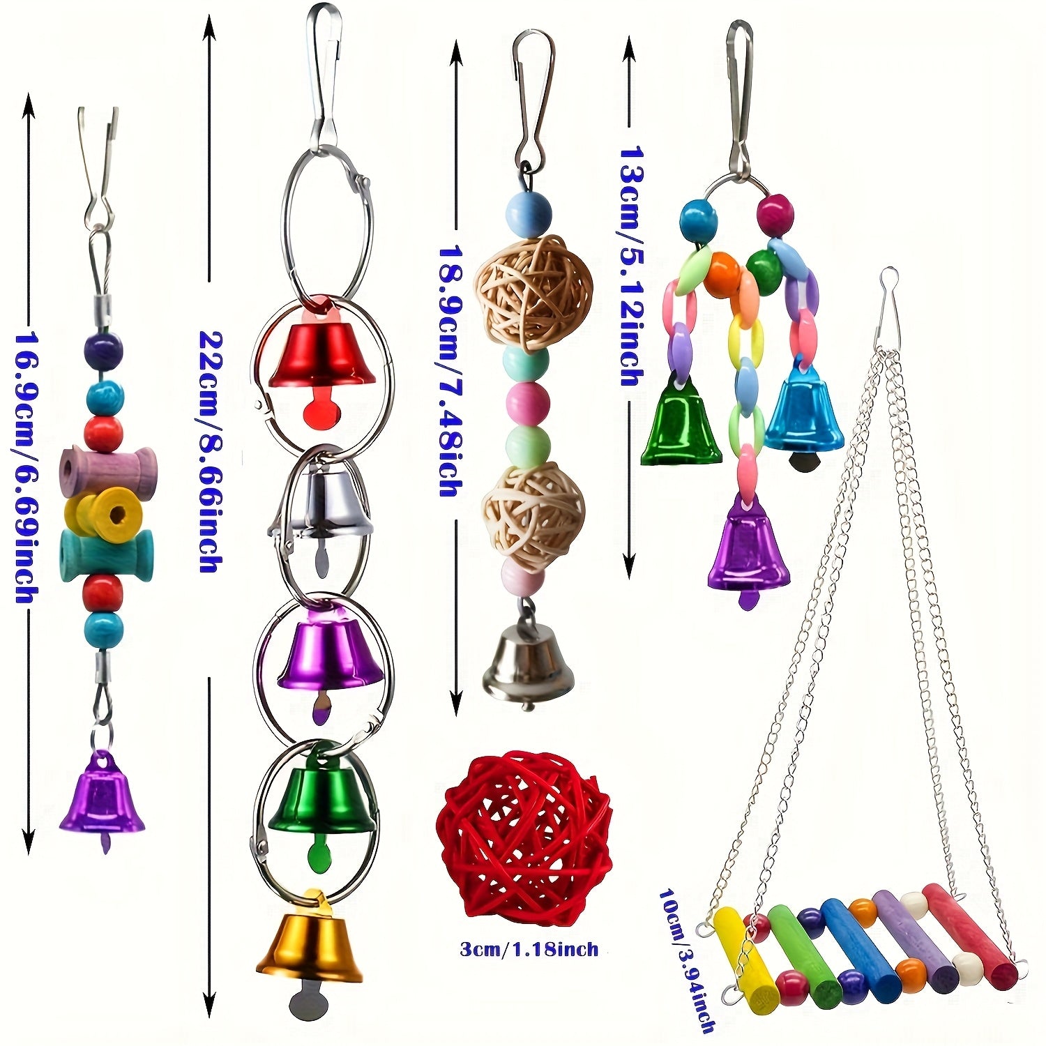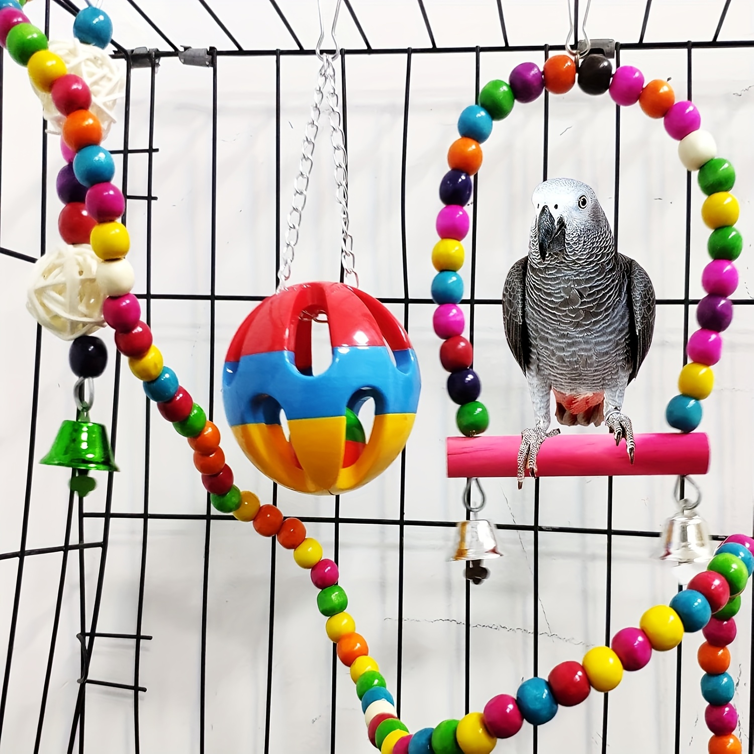 15pcs Wood Bird Parrot Swing & Climbing Gym Set with Hanging Bells, Hammock, Ladders - Chewable Cage for Small to Large Birds (Parakeets, Cockatiels, Conures, Macaws, Love Birds) - Wood for beak Health &