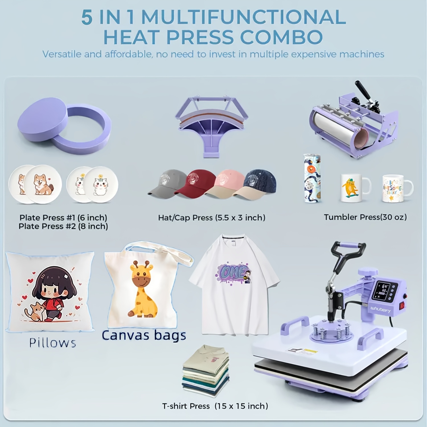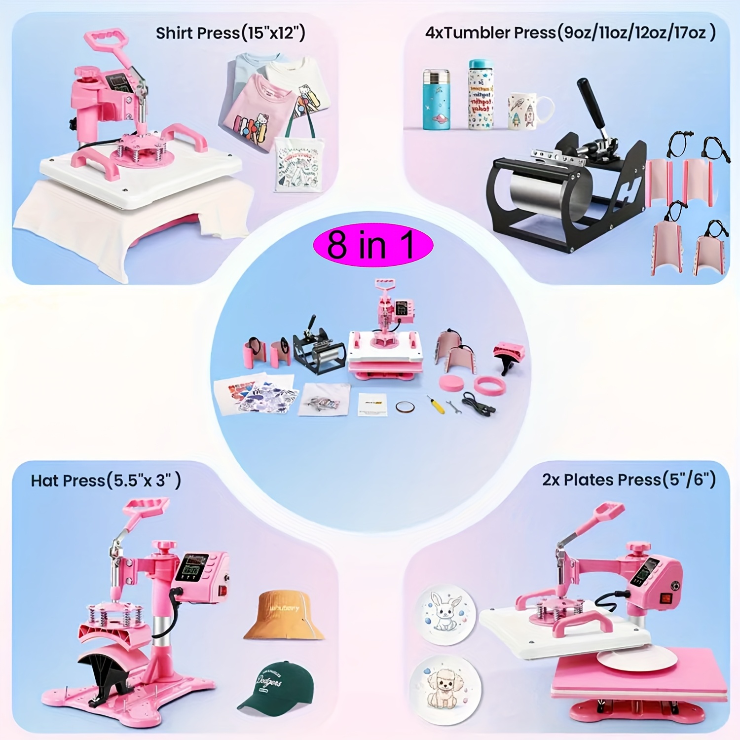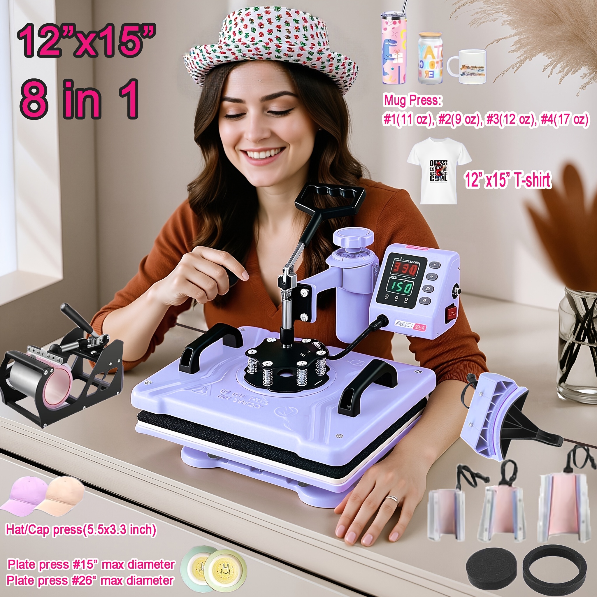 1pc 8-in-1/ 5-in-1 15x15 Inch Heat Pr Mane For T-Shirts, Bags, Pillows, Hats, Caps, Tumblers - HOMDOX Profional Sublimation Combo With Swing Away Design, Metal Construction, 220V US Plug, Multi-Size Transfer For DIY Crafts, DIY Craft Heat Pr | Profional Crafting Tool | Sturdy Metal Construction, Tumbler Heat Pr Mane