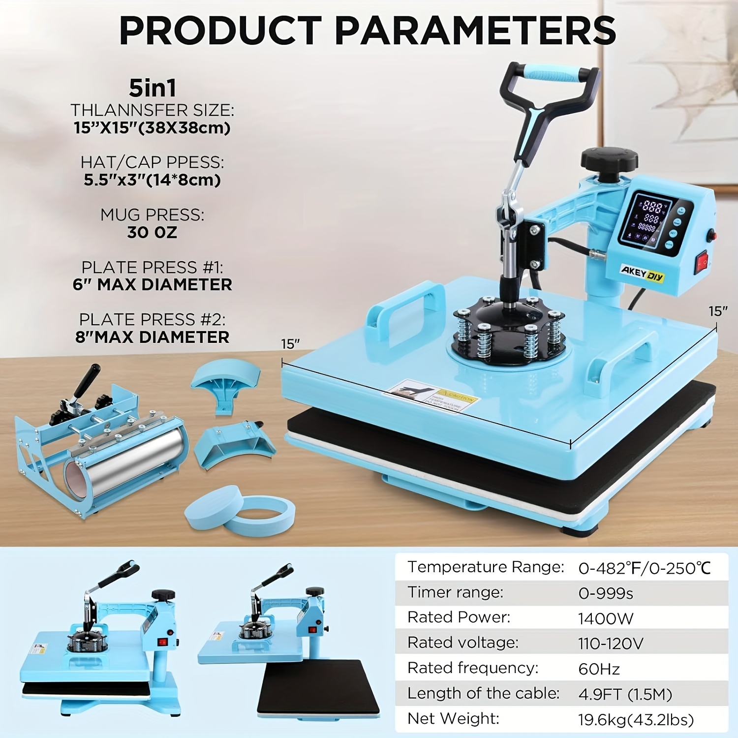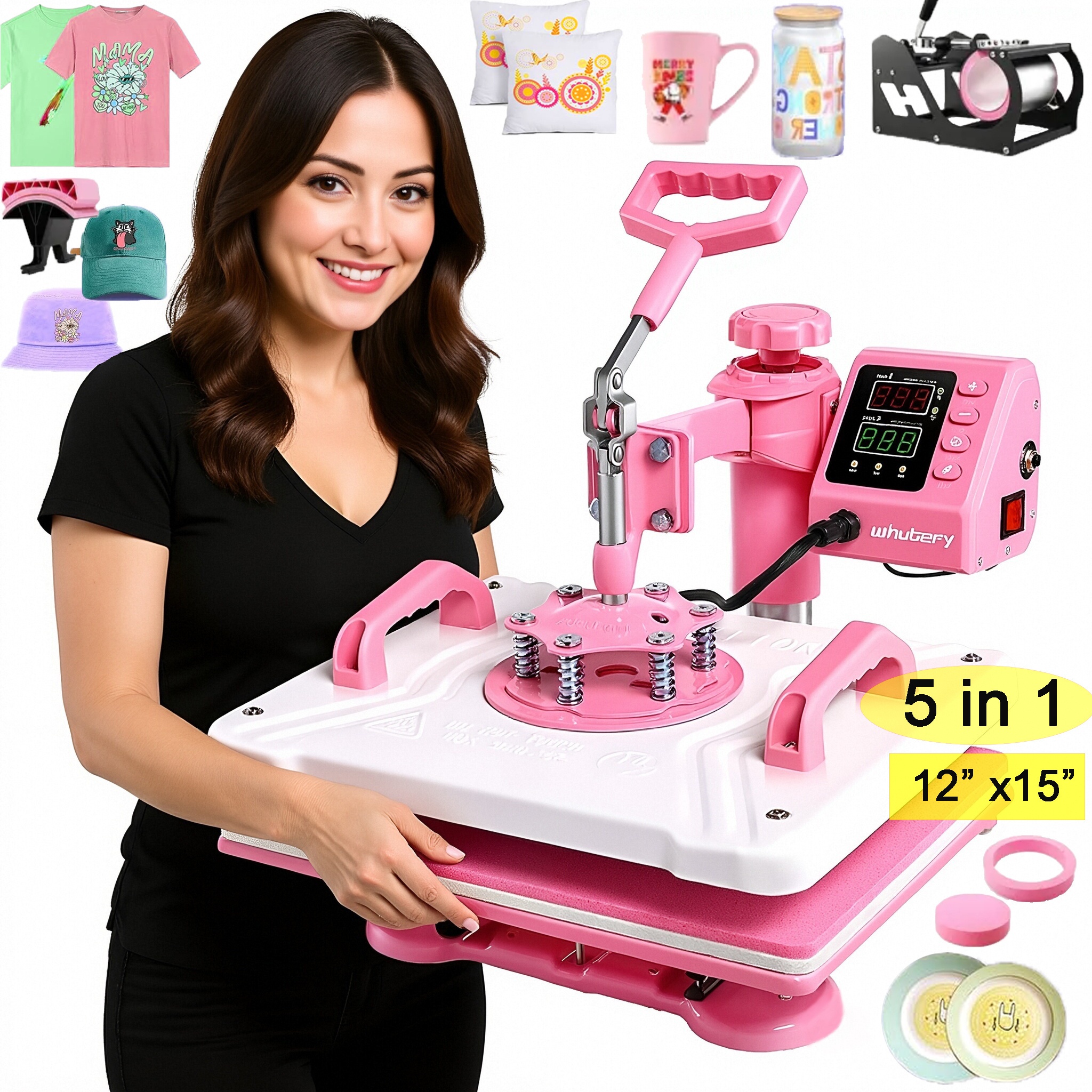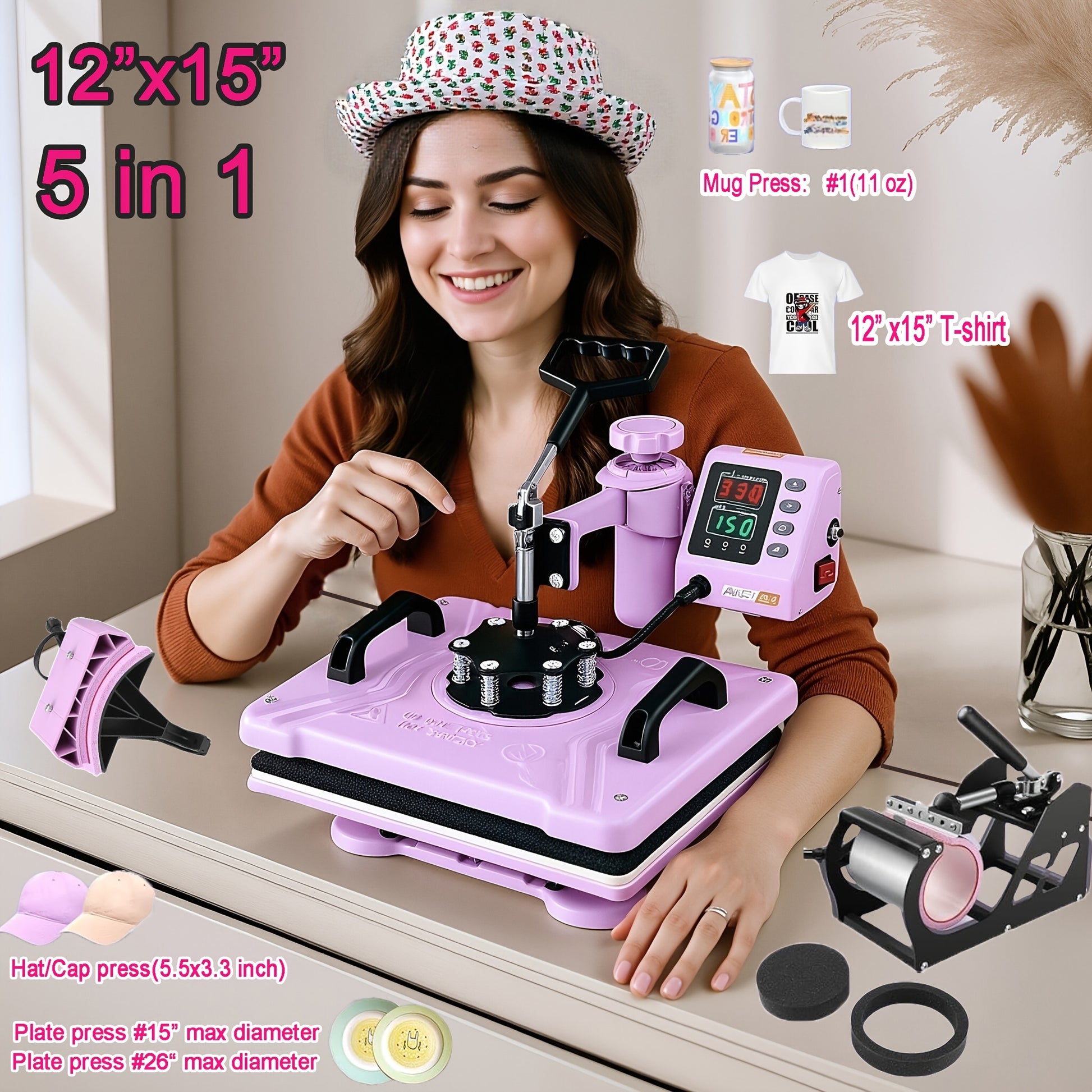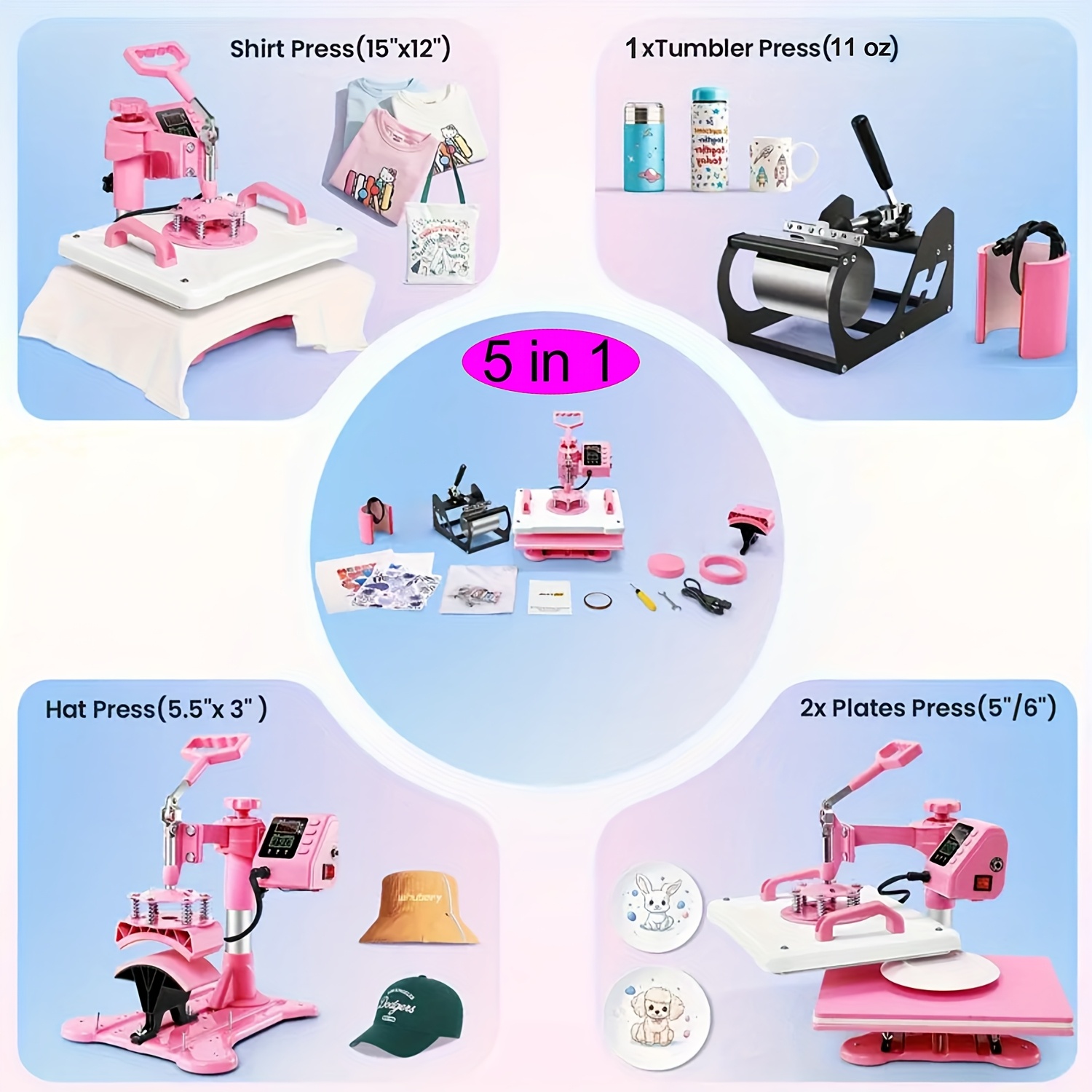 1pc 8-in-1/ 5-in-1 15x15 Inch Heat Pr Mane For T-Shirts, Bags, Pillows, Hats, Caps, Tumblers - HOMDOX Profional Sublimation Combo With Swing Away Design, Metal Construction, 220V US Plug, Multi-Size Transfer For DIY Crafts, DIY Craft Heat Pr | Profional Crafting Tool | Sturdy Metal Construction, Tumbler Heat Pr Mane
