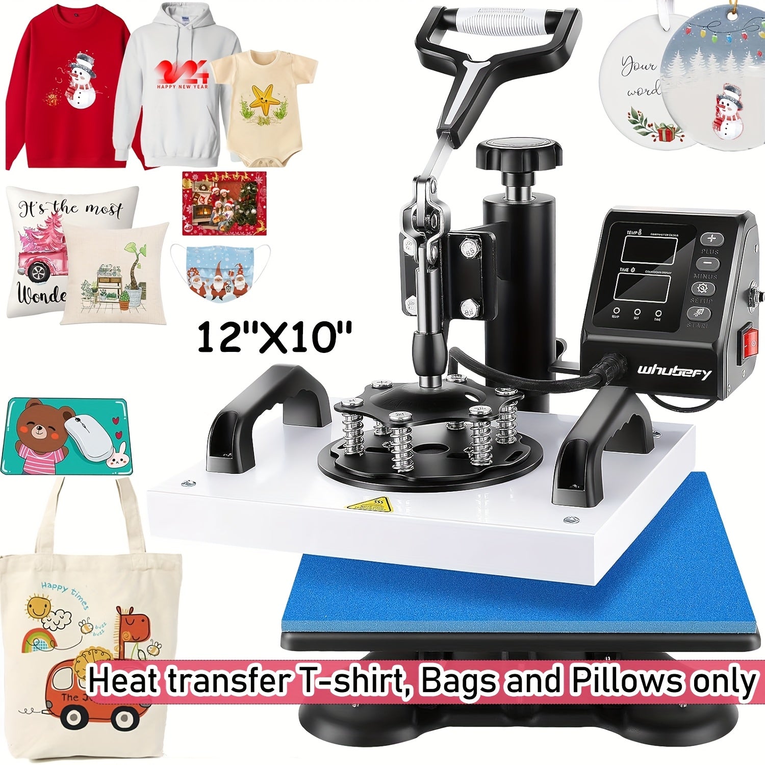 15"x15"/15"x12" 8-in-1/ 5-in-1 Heat Press Machine for T-Shirts, Bags, Pillows, Hats, Caps, Tumblers - 12"x10" T-Shirt Machine Can Only Press T Shirts, Pillows And Bags - HOMDOX Professional Sublimation Combo with Swing Away D