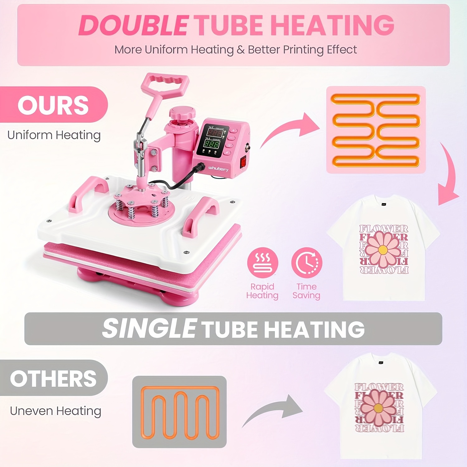 This heat transfer mane can only transfer T-shirts, pillowcases, cloth bags, masks, mouse pads and other textiles that can be laid flat.