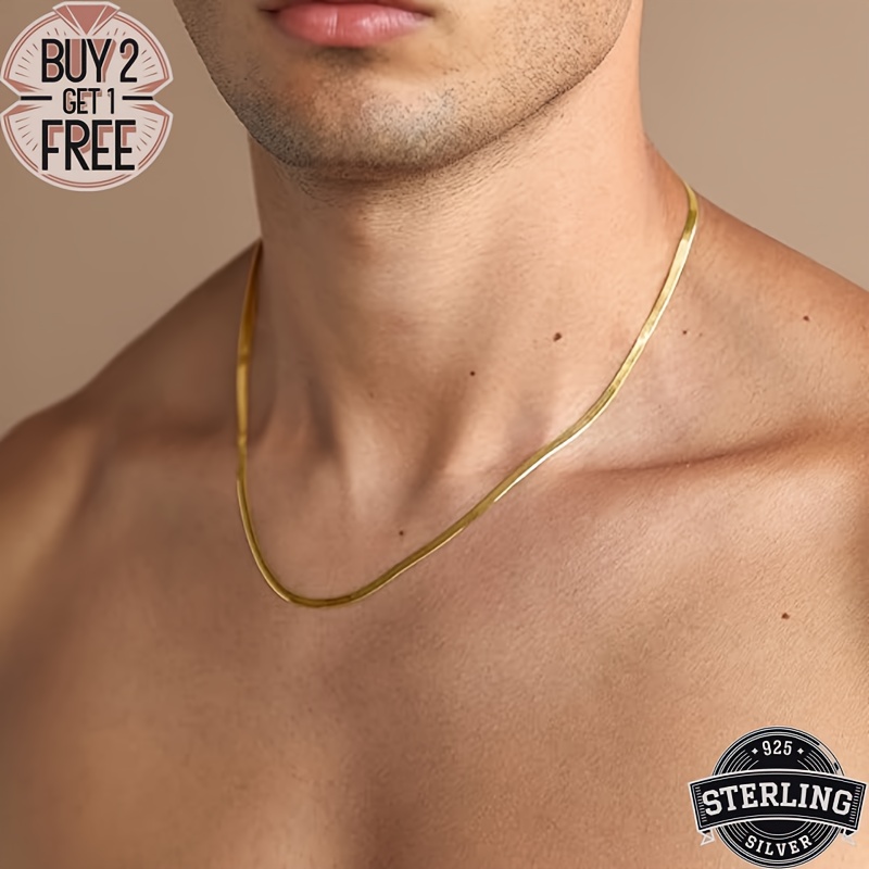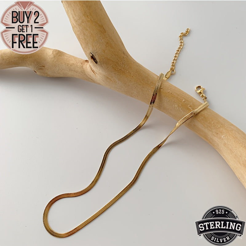 18K Golden plated Golden-plated, 925 Sterling Silvery 18K Golden plated Flat Necklace, Classic And Simple Design, Multi-sized Fashionable Necklace, Suitable for Various Occasions - Valentine's Day, Halloween, Christmas, Anniv