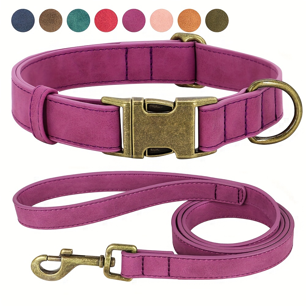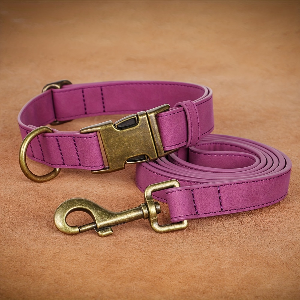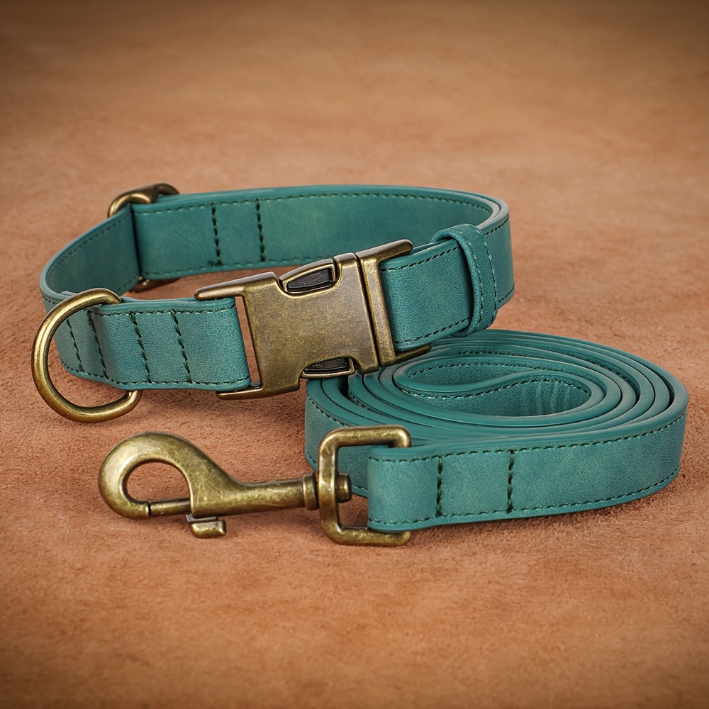1pc Faux Leather Dog Collar and Leash Set - Adjustable Reflective Padded Pet Collar with Golden-Tone Hardware, Comfortable Soft Cushioned Design for Small/Medium/Large Dogs, Nighttime Safety, Training & Walking, Durable Synth