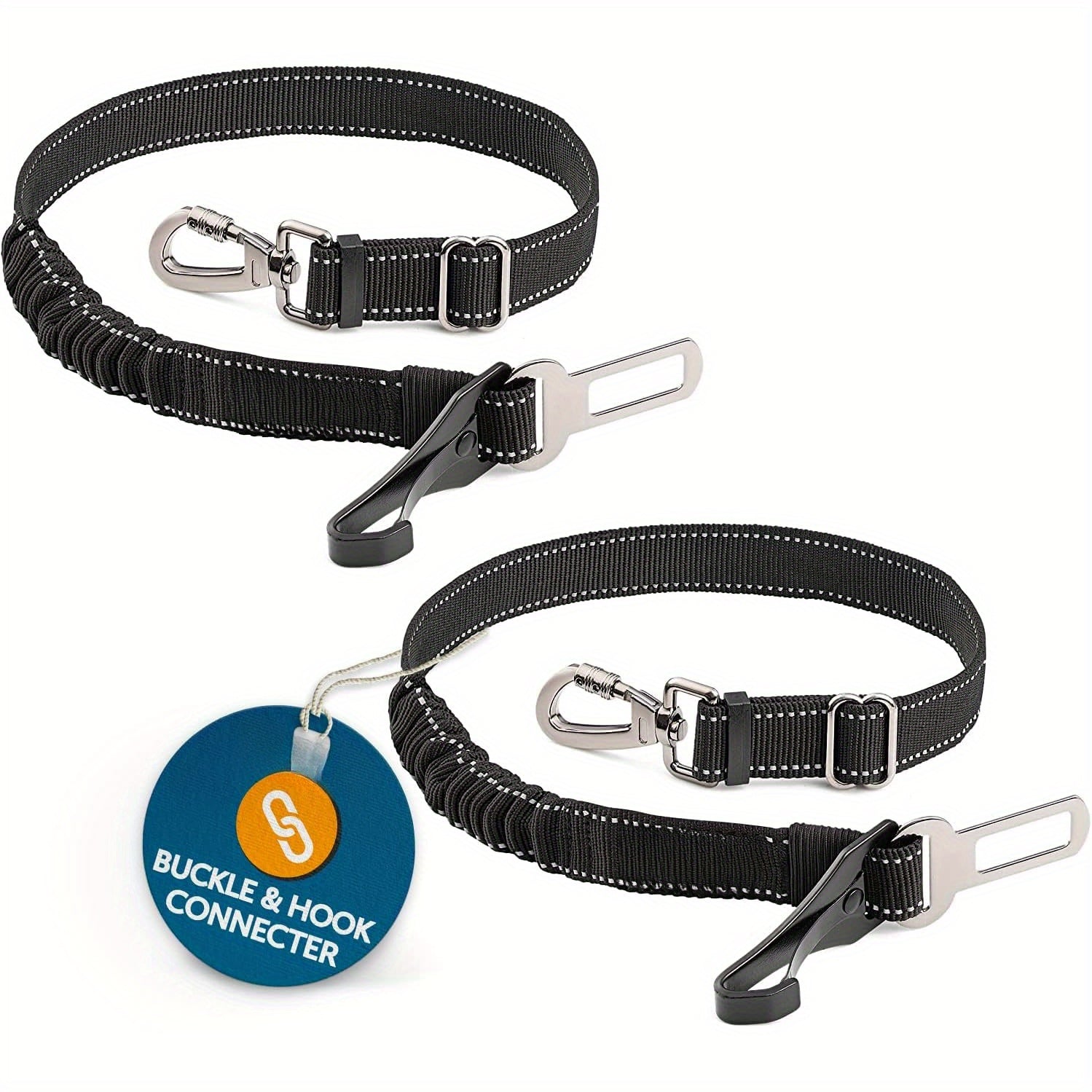 2 Adjustable Dog Seat Belts for Cars - Elastic Bungee Harness with Easy Clip, Durable Car Leash for Medium to Large Dogs, Black & Orange Design, Secure Dog Restraint System, Dog Seat Belt, Medium Large Dog, Sturdy Metal Buckl