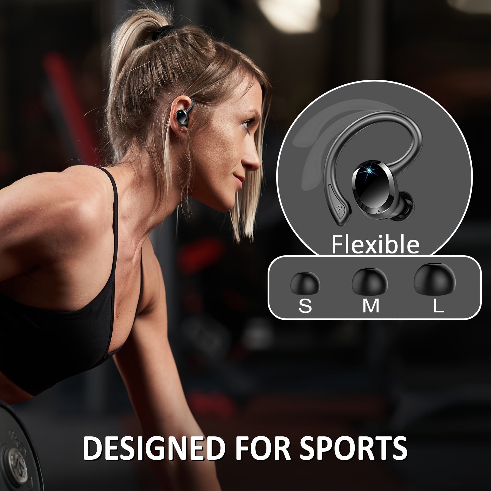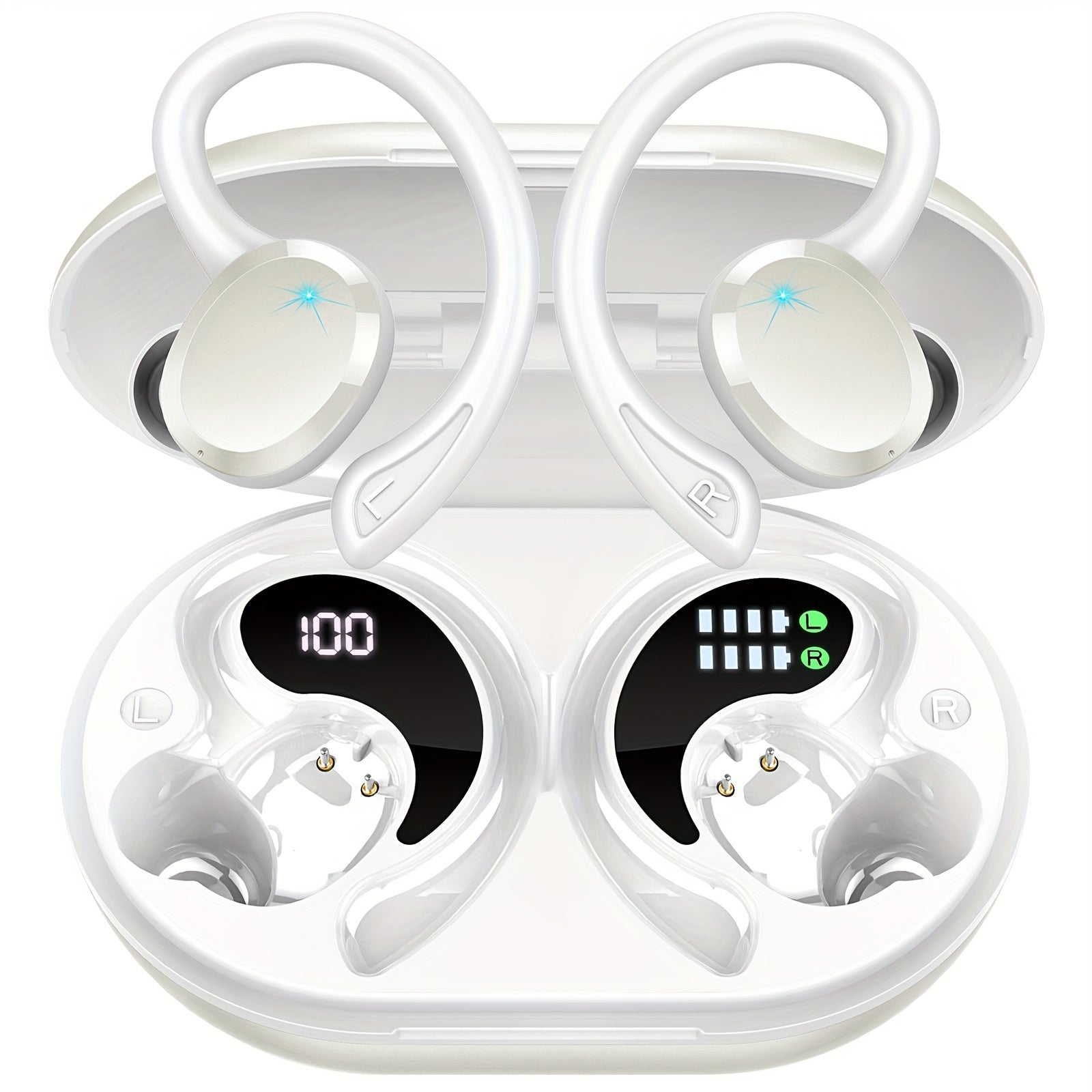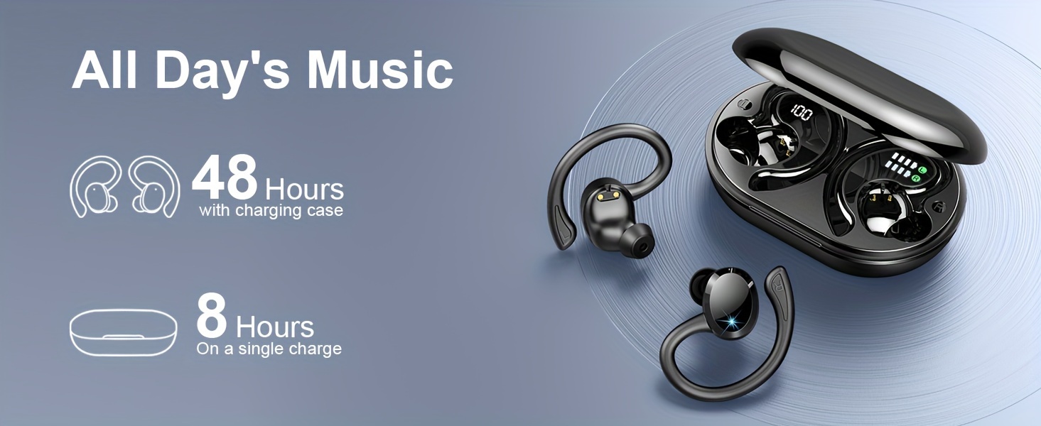 2024 Wireless 5.3 Earbuds 14.2mm Driver Stereo, 48 Hours Headphone with Ear Hanging, Wireless Earbuds with 4 Noise Canceling Microphones, Suitable for Exercise/Running/Cycling Android/IOS