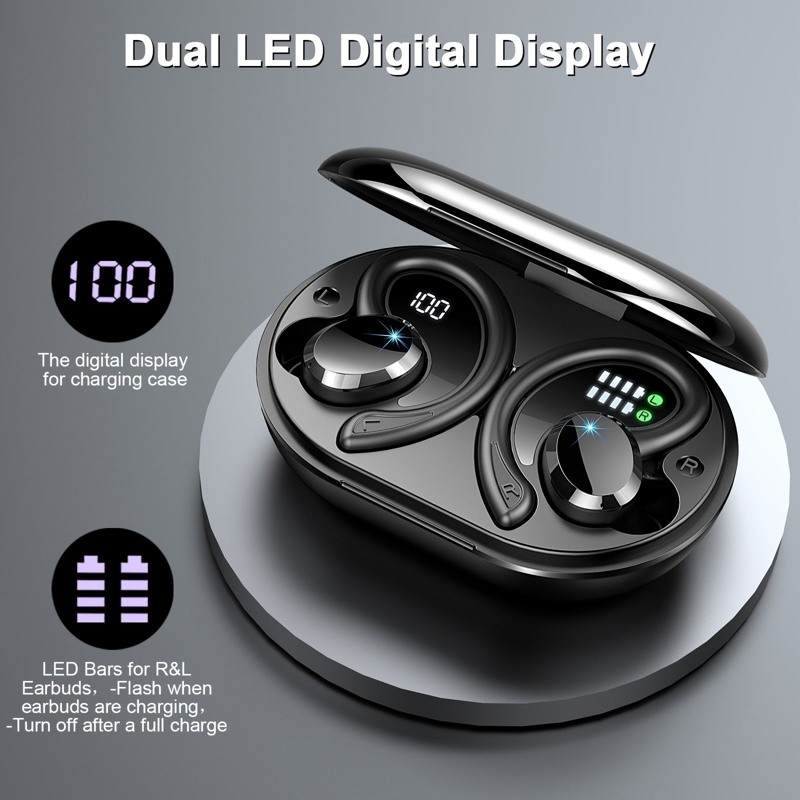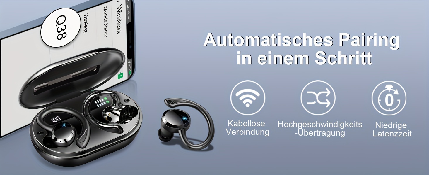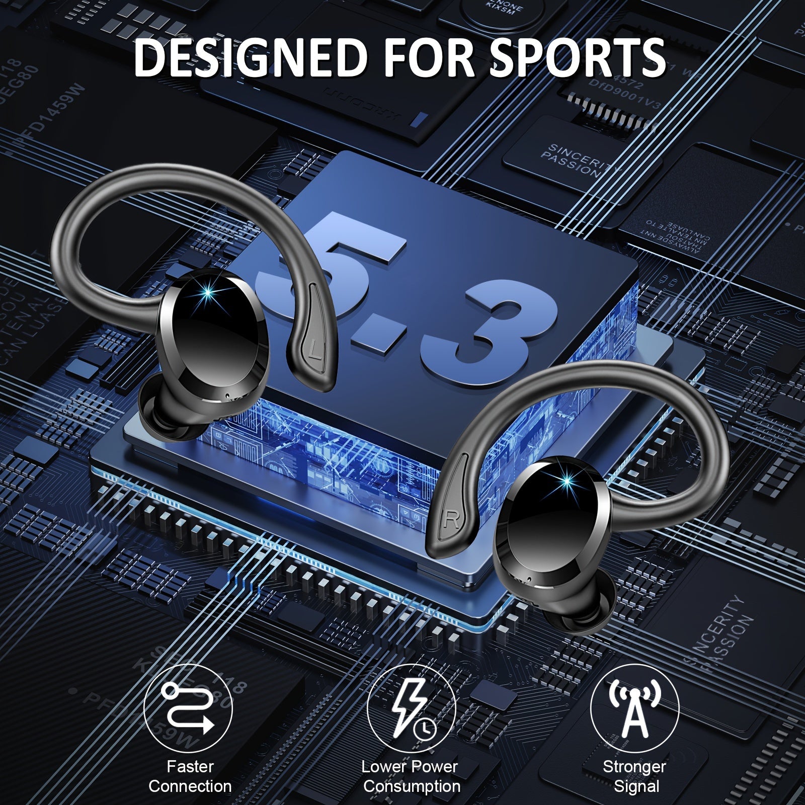 2024 Wireless 5.3 Earbuds 14.2mm Driver Stereo, 48 Hours Headphone with Ear Hanging, Wireless Earbuds with 4 Noise Canceling Microphones, Suitable for Exercise/Running/Cycling Android/IOS