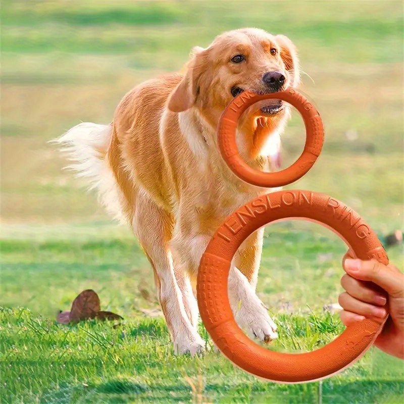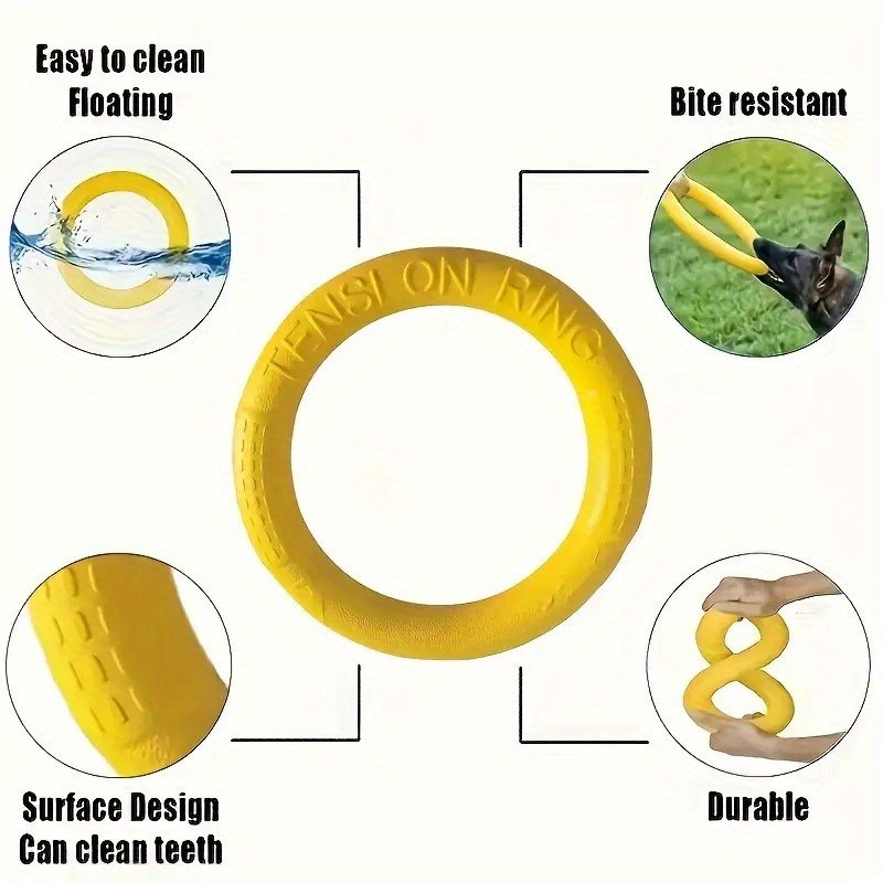 2pcs Heavy-Duty Dog Disc Toss Ring & Disc - Chew-Resistant Non-Toxic Synthetic Rubber with Bright Yellow/Blue Rings for Fetch, Tug-of-War, Training Suitable for All Dog Breeds & Sizes