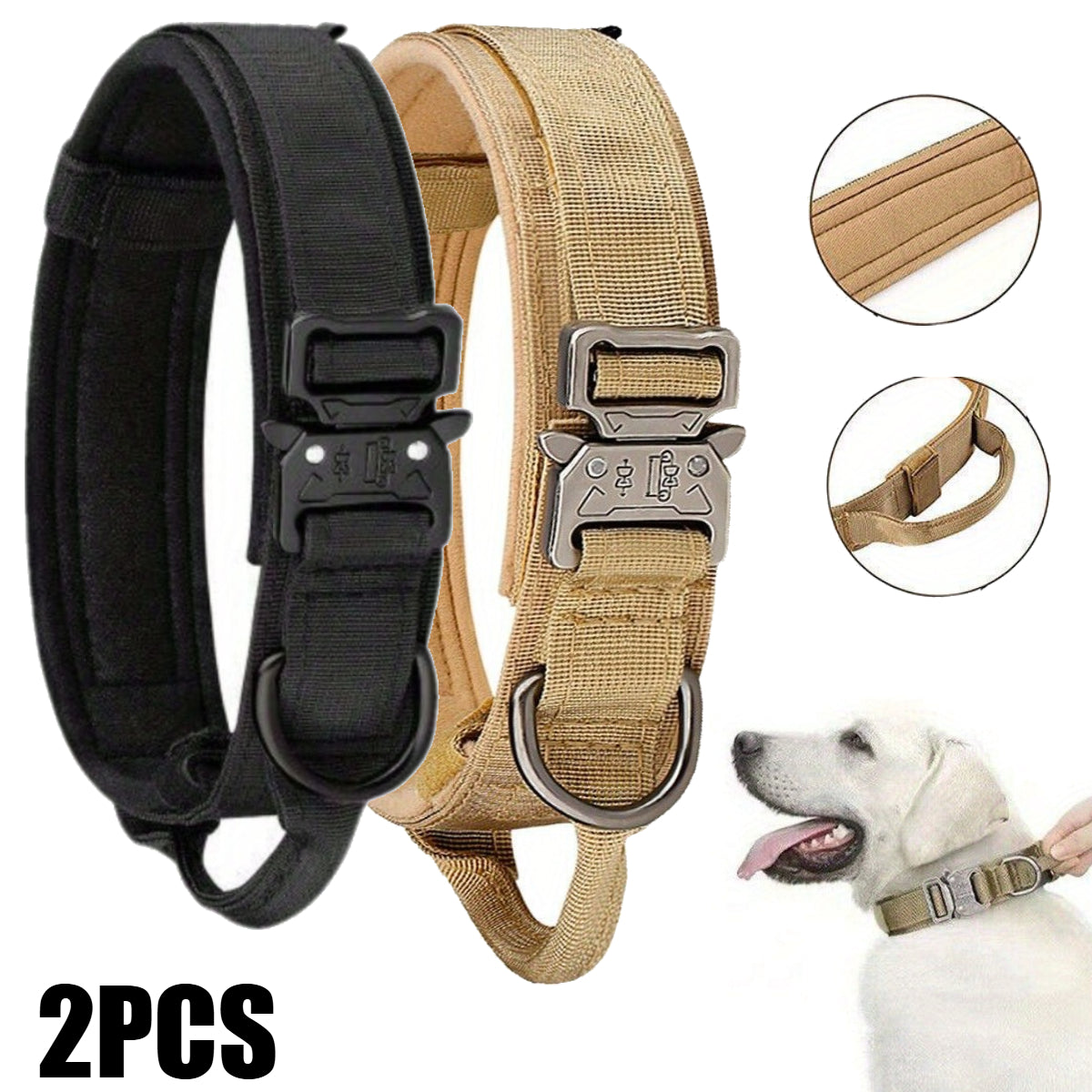 2pcs Heavy Duty Tactical Dog Collar with Handle & Metal Buckle - 1.5" Wide Nylon -Grade Obedience Training Collar for Large/Medium Dogs (German Shepherd,, Labrador) - Adjustable, Padded, Outdoor, Camping, Hunting Gear