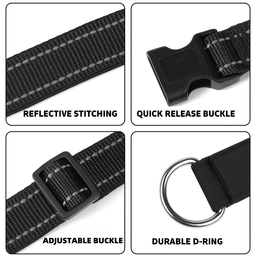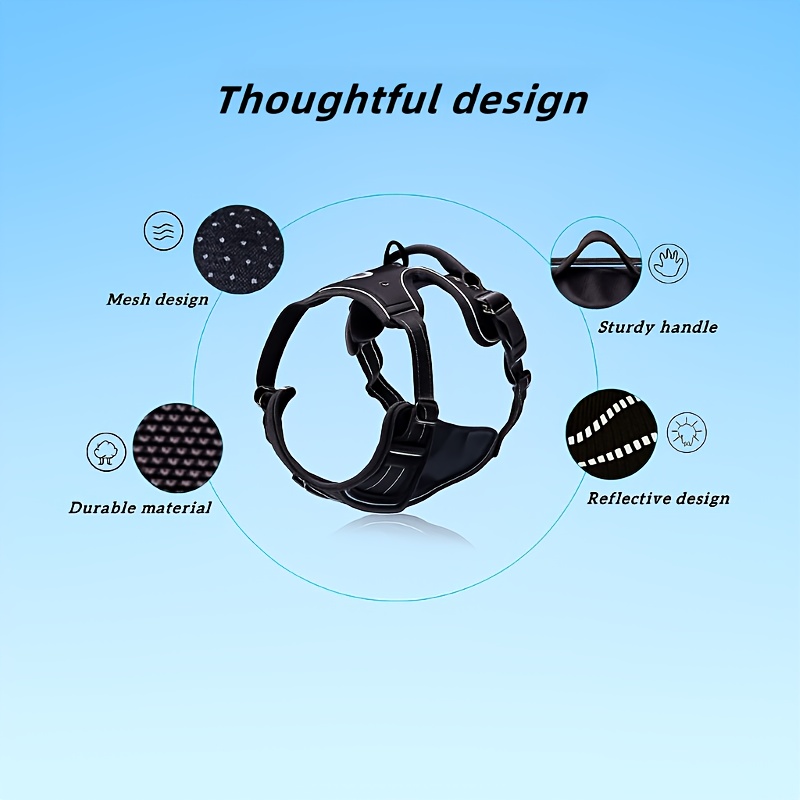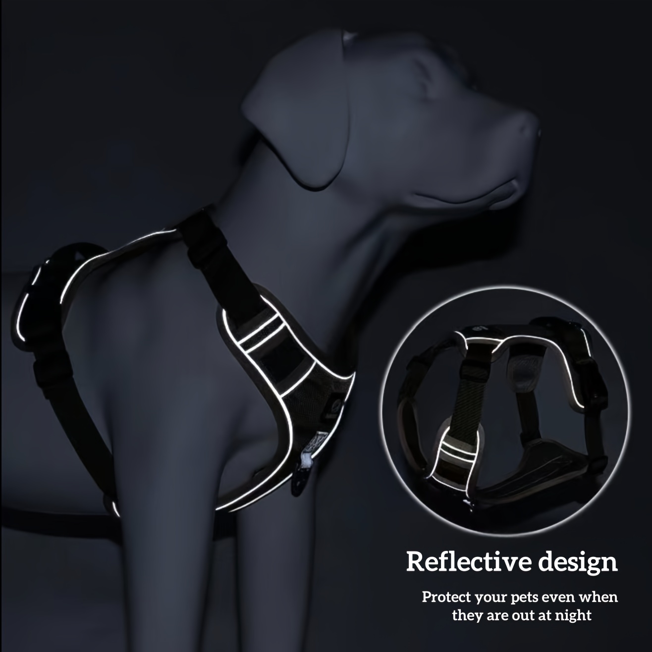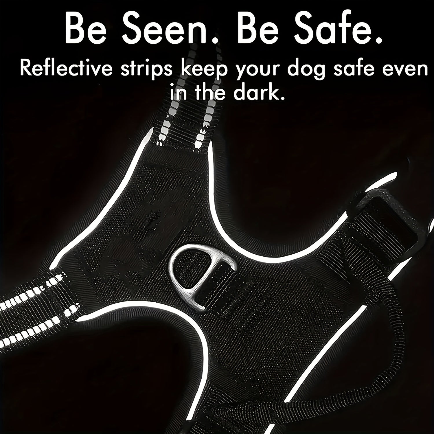 3 In 1 Harness Set, Soft Padded Dog Collar & Durable Adjustable Chest Harness With Heavy-Duty Leash, Reflective Oxford Fabric, Non-Choke, Easy Control Handle & Quick-Release Buckles, Breathable Mesh, For Dogs Of All Sizes(S,