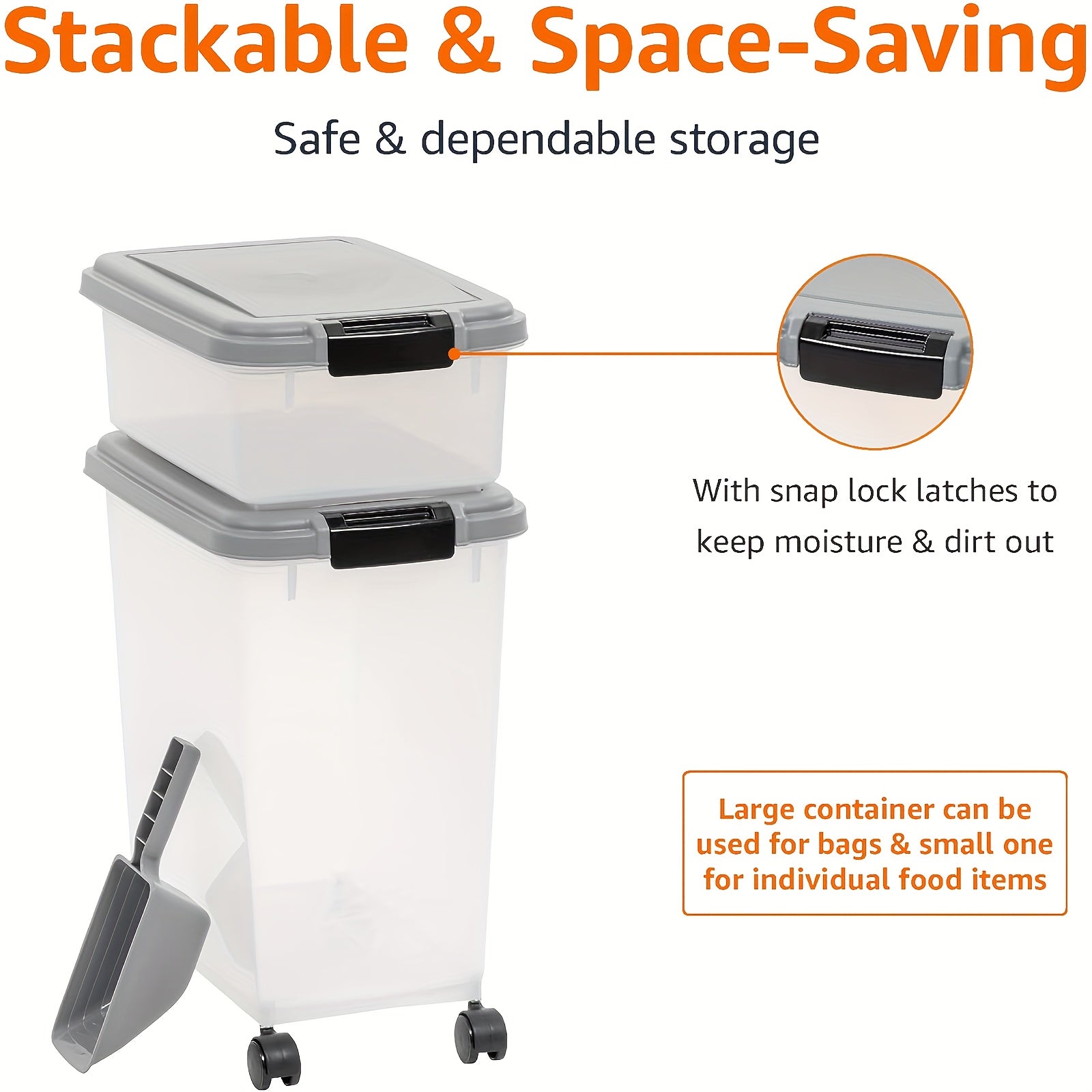 30 lbs & 11 lbs Combo Dog & Cat Food Storage Container - Heavy-Duty Airtight Pet Food Dispenser with Stackable Design, Bin & Scoop, Locking Latches & Smooth-Rolling Wheels - Large Capacity Dry Kibble, Treats Organizer (Multi-