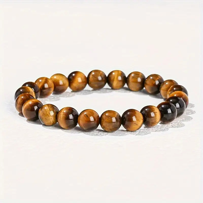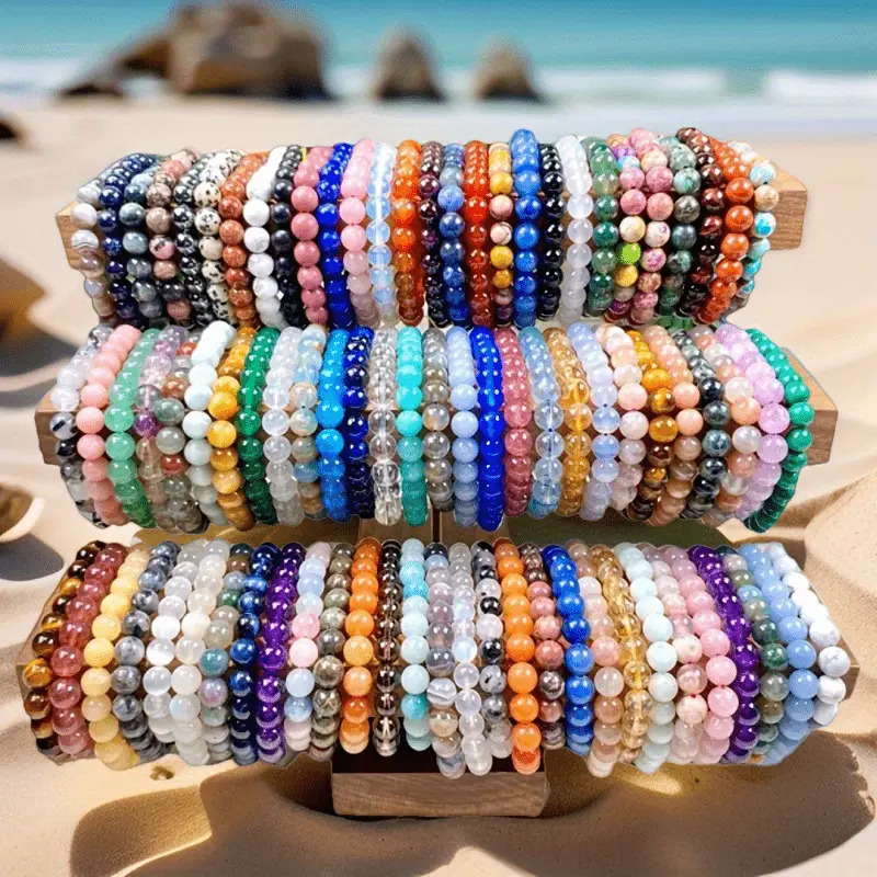 49pcs Handmade Stone Bead Bracelet- Multiple Colors Available, 8mm Elastic Beaded, Exquisite Style Valentine's Day Suitable