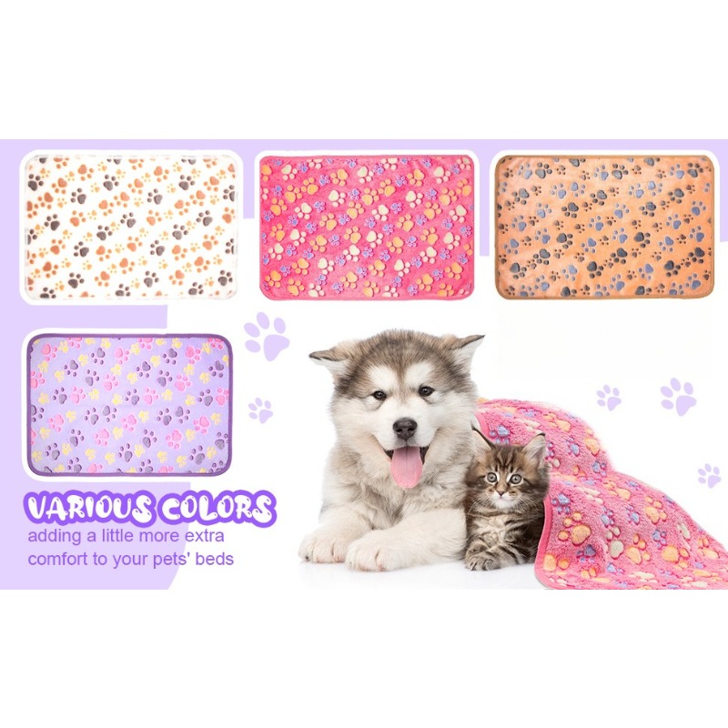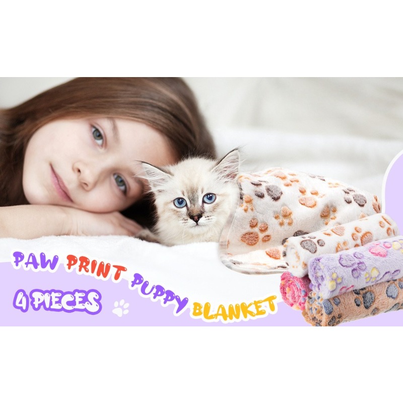 4pcs Set Pet Bedding & Chew-Resistant -XL Large 30"x21" Paw Print Blanket, Dog Teething Toy & for cat Sleeping Pad - Soft Flannel Fabric, Anti-Shedding, Machine Washable, Multi-Color Options (White/Coffee/Pink/Purple) for Sma