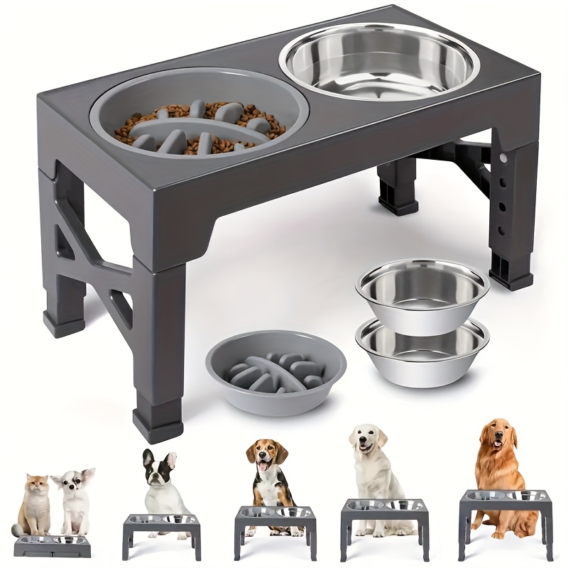 5 Height Adjustable Raised Dog Bowls, Collapsible Raised Dog Bowl Stand with Slow Food Bowl And Stainless Steel Dog Food Bowl for Small, Medium, And Large Dogs And Cats