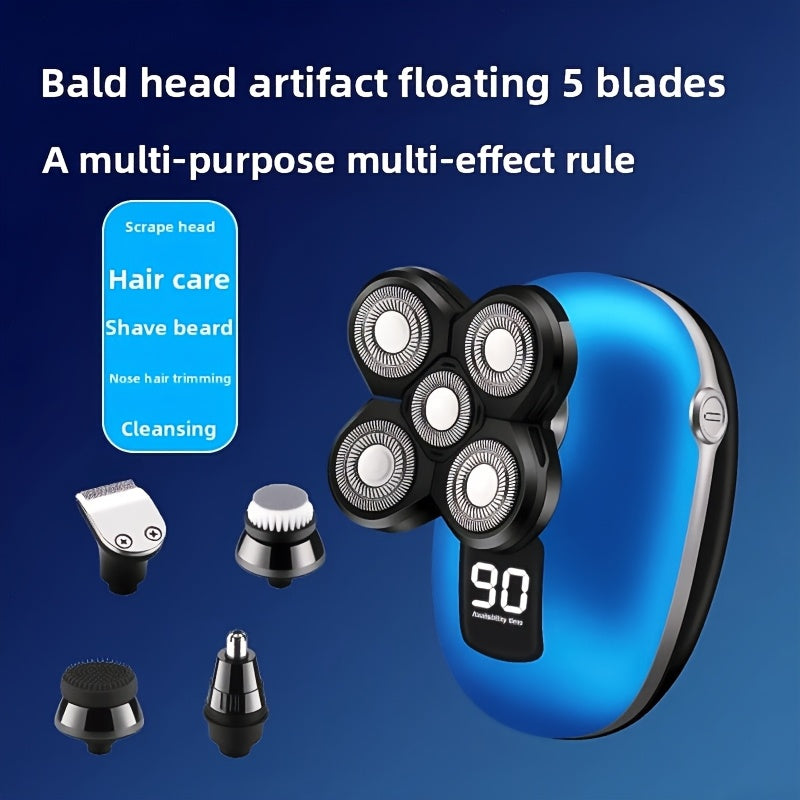 - 5-in-1 versatility: shave bald, cut a clean hairline, trim beard or sideburns, remove nose hair, and edge with interchangeable heads built for a snug, even finish.