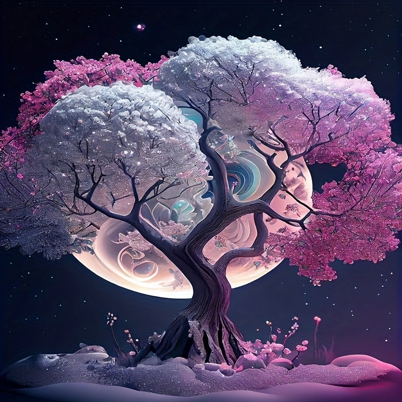 5DIY Diamond Art Painting Kit - Round Mosaic Wall Art Craft Kit with Frameless Canvas, Vibrant Pink & Blue Tree Design, Perfect for Home Decor & Gifts, Diamond Art Kits, Gift Crafting, Whimsical Design, Detailed Craftsmanship