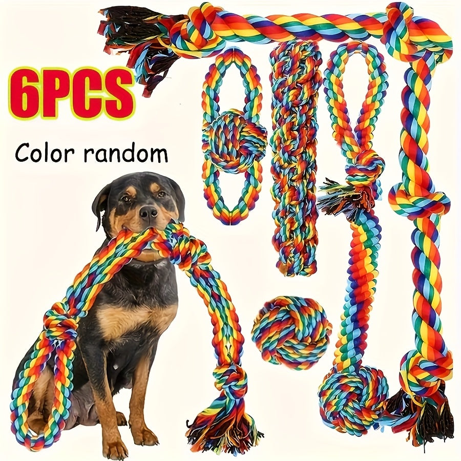 Meet the 6-piece chew toy set built for your aggressive chewer, offering teething relief, dental cleaning, and endless tug-of-war play for medium to extra-large dogs.