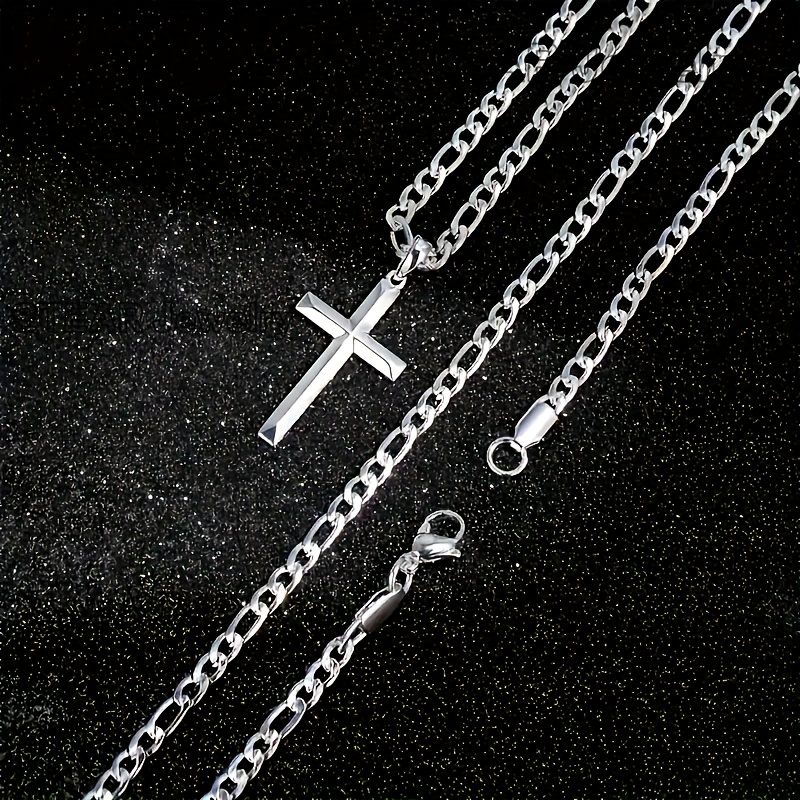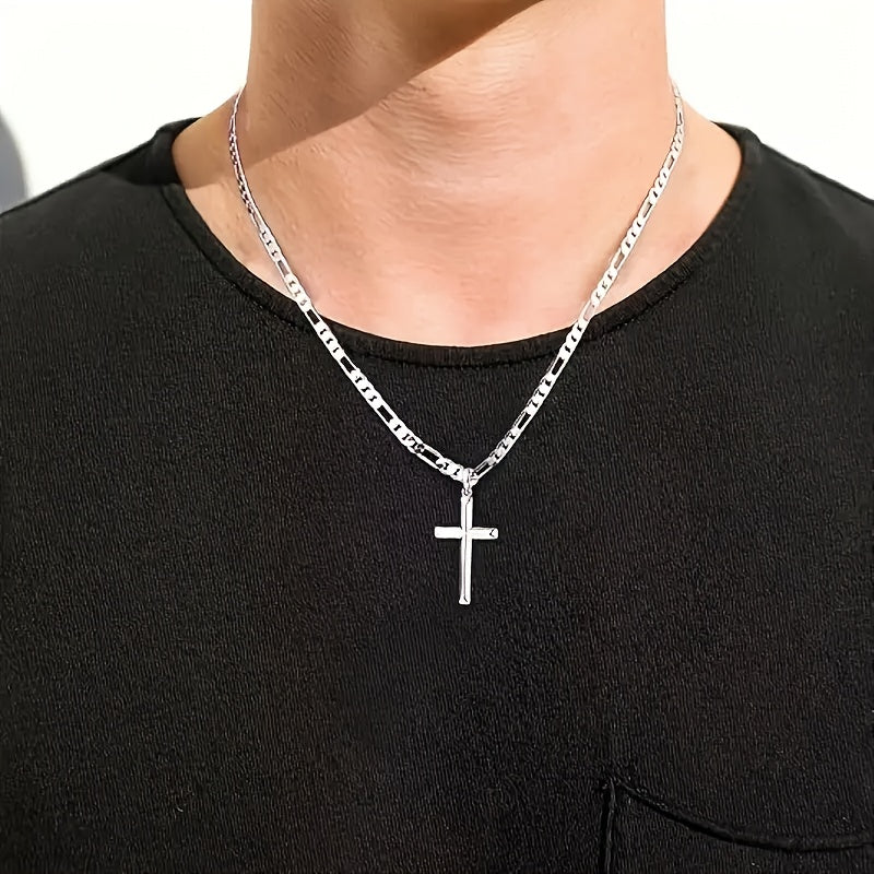 925 Silvery Cross Necklace, Figaro Chain, Suitable For Men And Women Necklaces, For Men, Wives, Girlfriends, Mothers, Daughters Anniversaries, Birthdays, Various Festivals, Special Occasions - Includes Gift Boxes