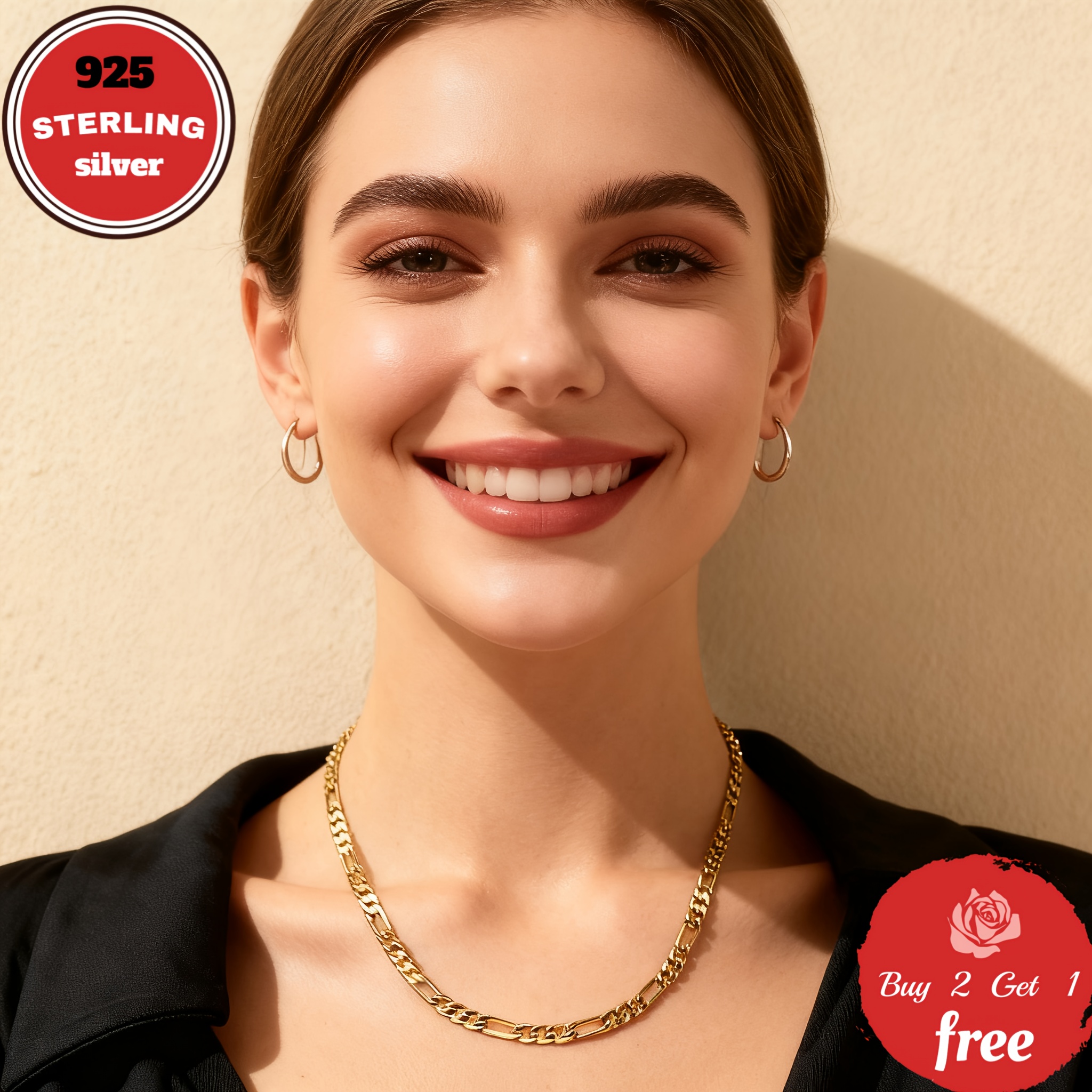 925 Sterling Silvery 6mm Figaro Necklace, Plated with 24K gold plated, Suitable for Daily Wear And Gifting. Christmas-themed, All-season Jewelry, Unisex, Comes with A Gift Box, A Perfect Gift for Your Boyfriend Or Girlfriend,