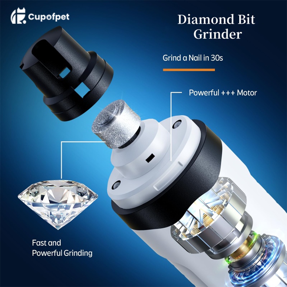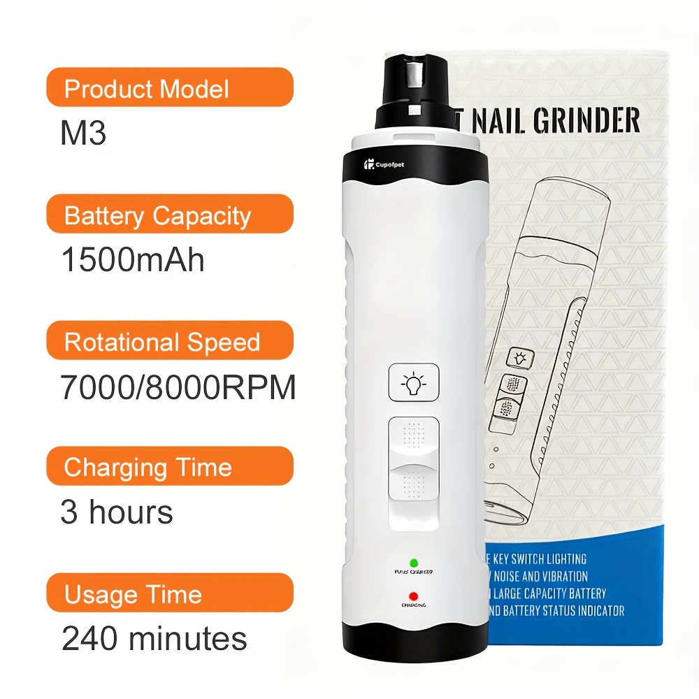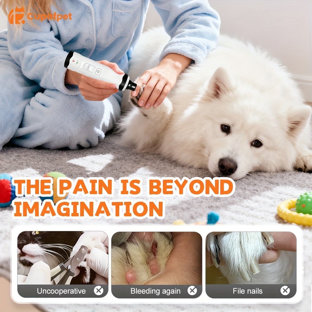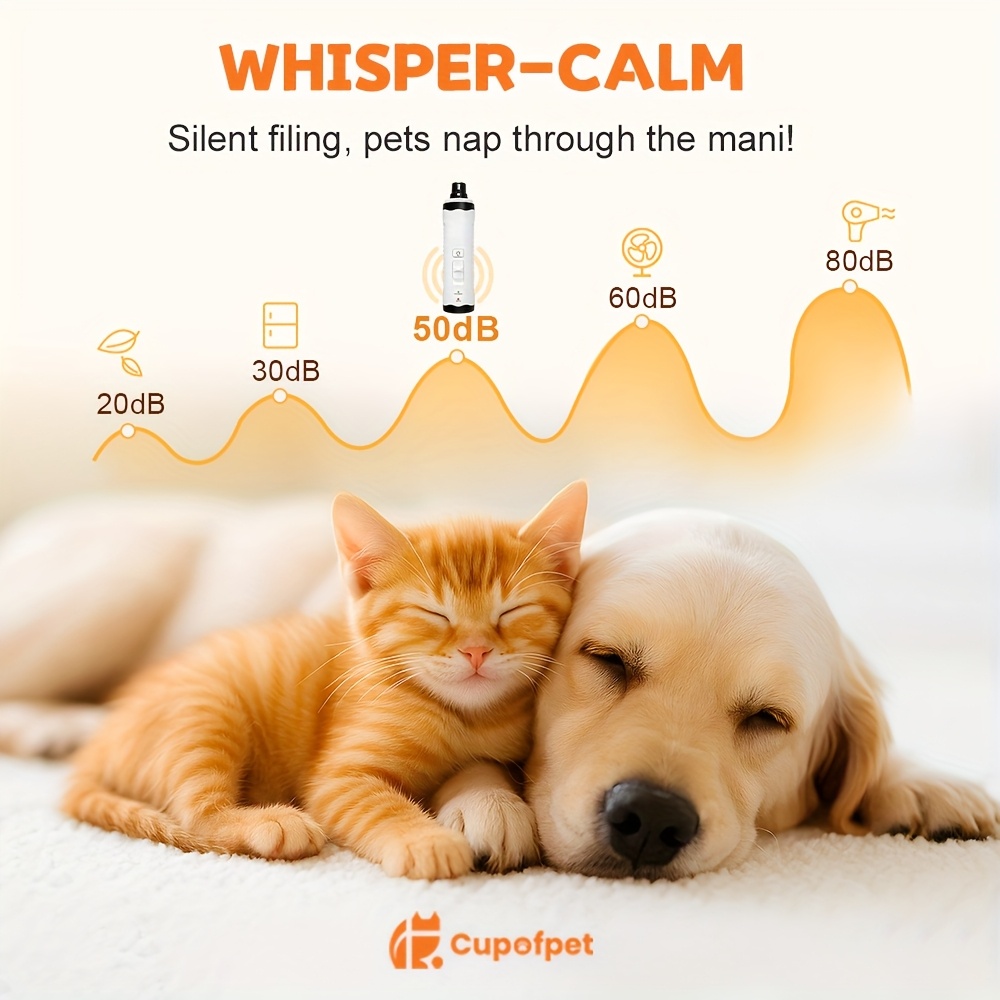 CUPOFPET Rechargeable Dog Nail Grinder With LED Light And Dual-speed Silent Operation - Painless Nail Grooming System, Suitable For All Dog Breeds, With Nail Grinding Wheel And Charging Cable Compatible With Smartphones/table
