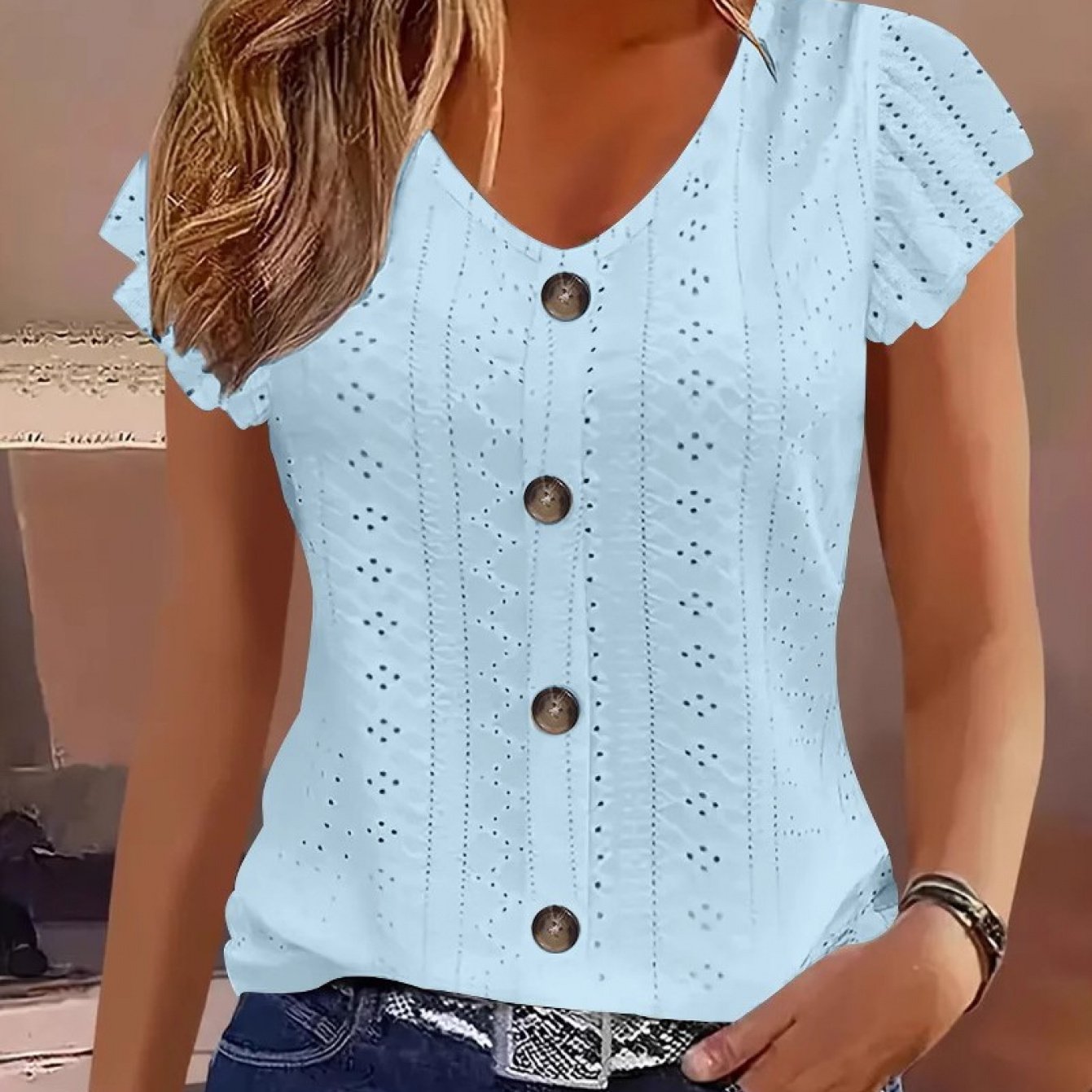 ![[Elegant Ruffled Top] Elegant Women's V-Neck Ruffled Short Sleeve Top | Eyelet Embroidered Jacquard T-Shirt with Decorative Buttons, Casual Spring & Summer Clothing](http://creverydaymarket.com/cdn/shop/files/a8a2c388da40983b185a71e6c95d9ff4_9a3d35b7d5d8.jpg?v=1767966178&width=1445)