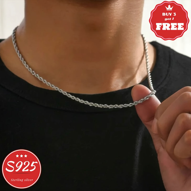 Italy 925 Handmade Sterling Silvery Necklace, Fashion Twist Necklace For Men And Women, Holiday, Valentine'S Day, Everyday Everything - With Exquisite Gift Box (buy 3 Get 1 Free)