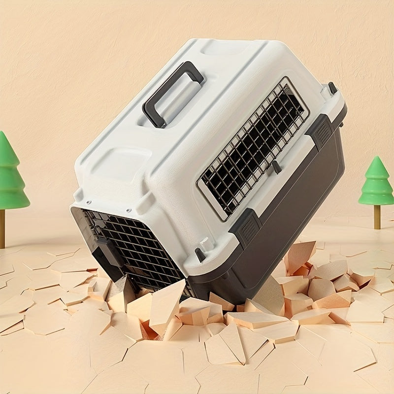 [Premium Pet Crate] 1pc Premium Pet Airline Crate - Durable, Portable, Full Iron Mesh - Comfortable for International Travel, Includes Separate Cages for Cats & Dogs