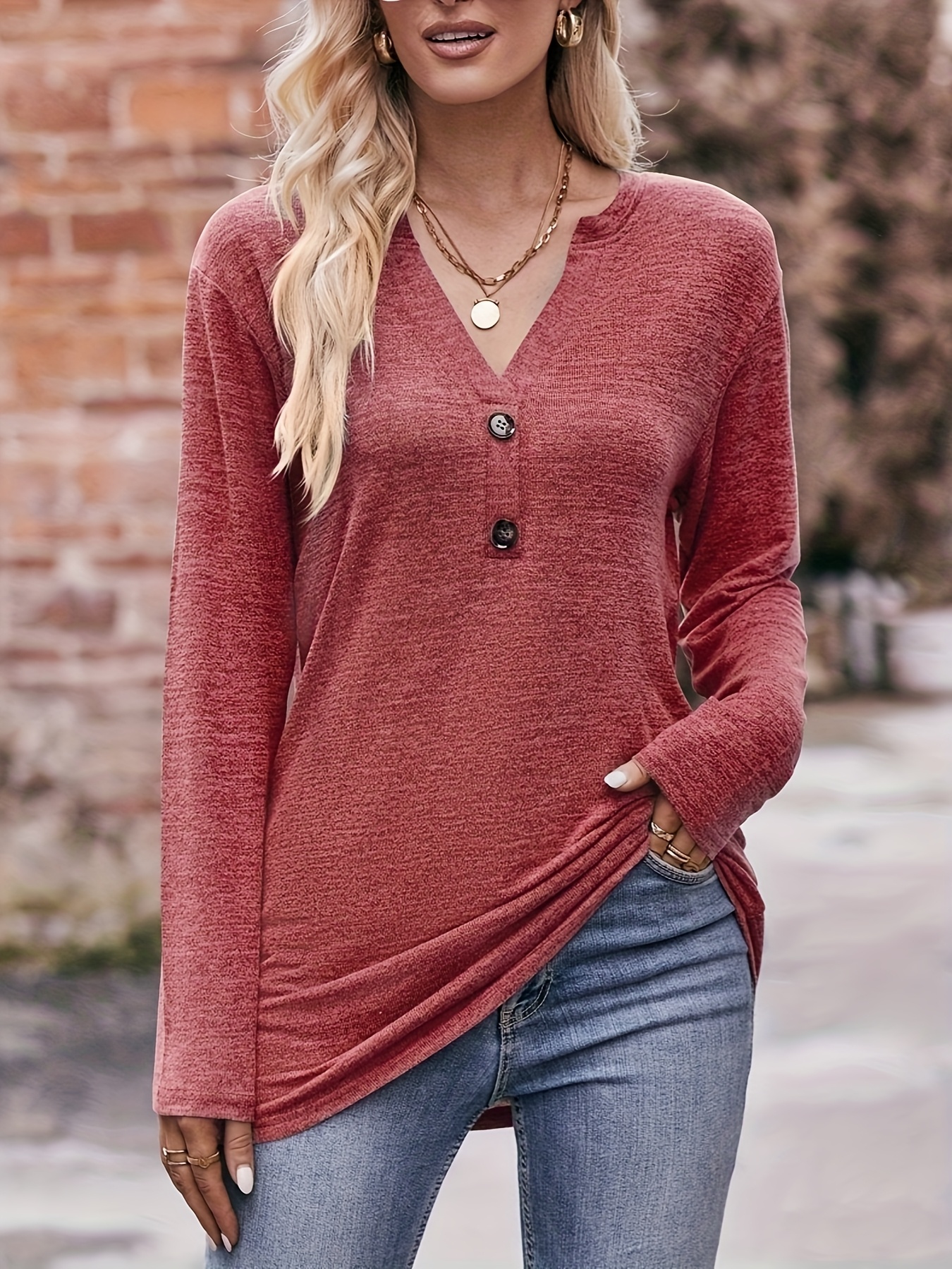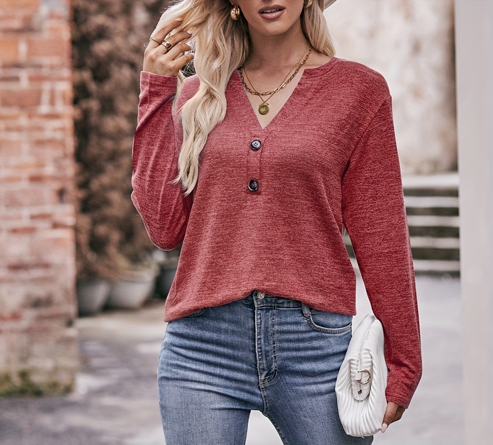 [Soft Brushed Thermal Blouse] Women's Soft Brushed Thermal Long Sleeve Blouse - Elegant V-Neck Button Front Shirt, Non-See-Through for Winter | Everyday Essential Tops for Office, Casual, Home | Comfortable Material, Versatil