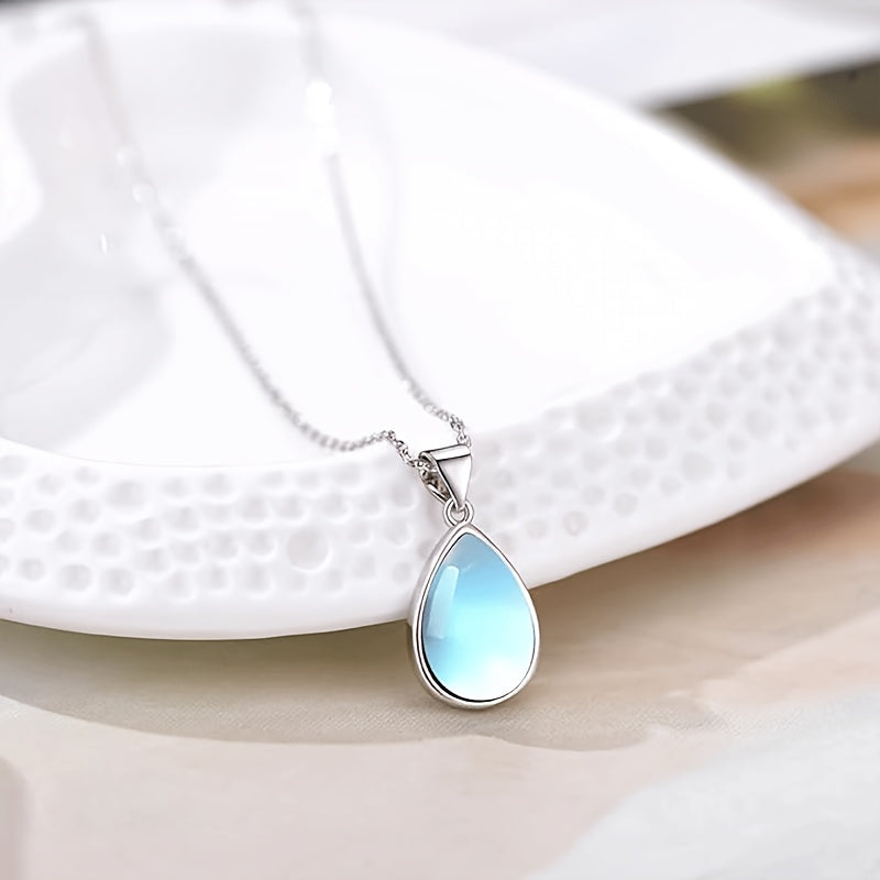 Teardrop-Shaped Moonstone Pendant Necklace Made of S925 Silver, Suitable for Everyday Wear by Women, Perfect for Casual Outfits And Jewelry Gifts, Hypoallergenic, Weighing 0.11 oz.