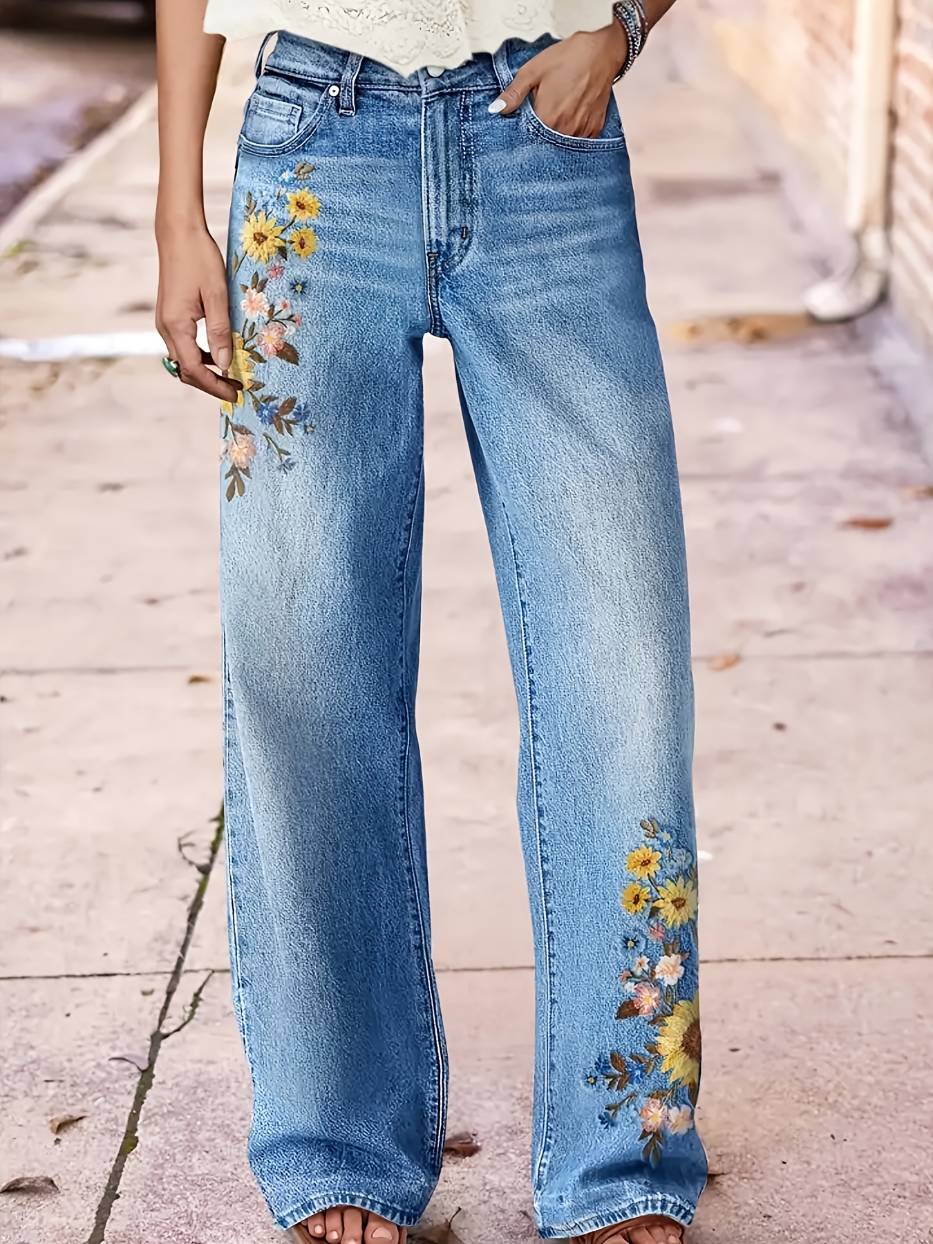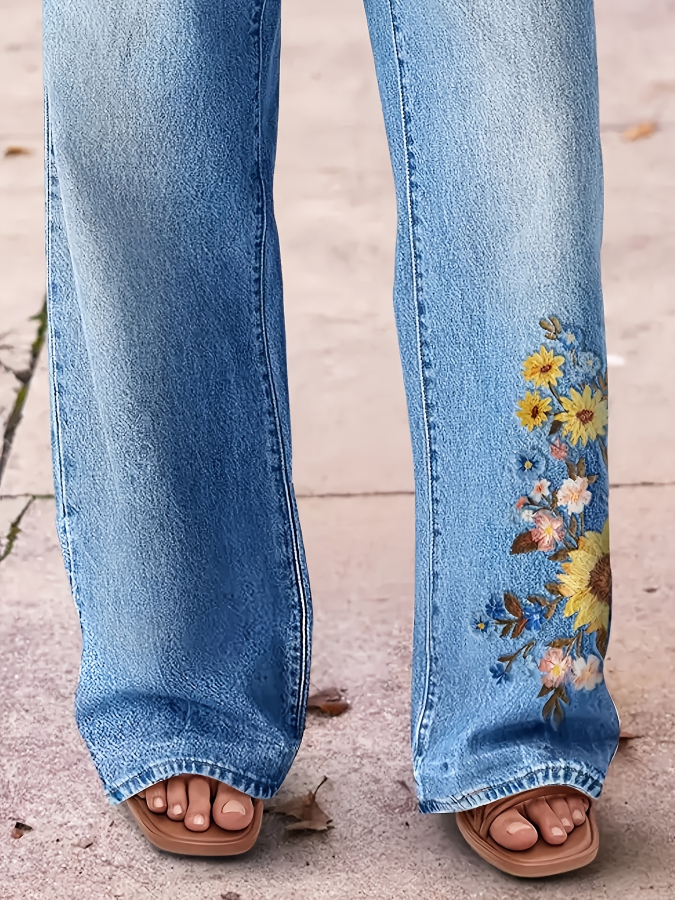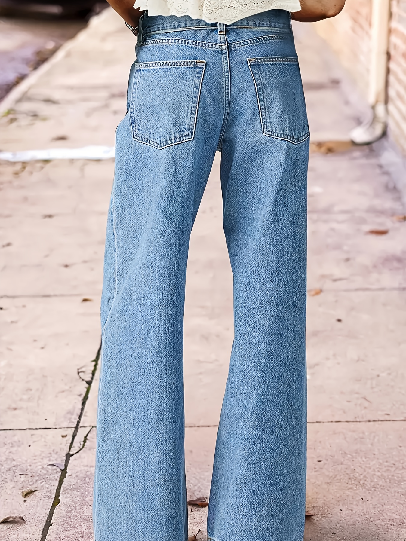 Women's High-Waisted Light Wash Jeans - Stretch Straight Pants with Beltless, Machine-Washable Casual Wear Suitable for Seasons