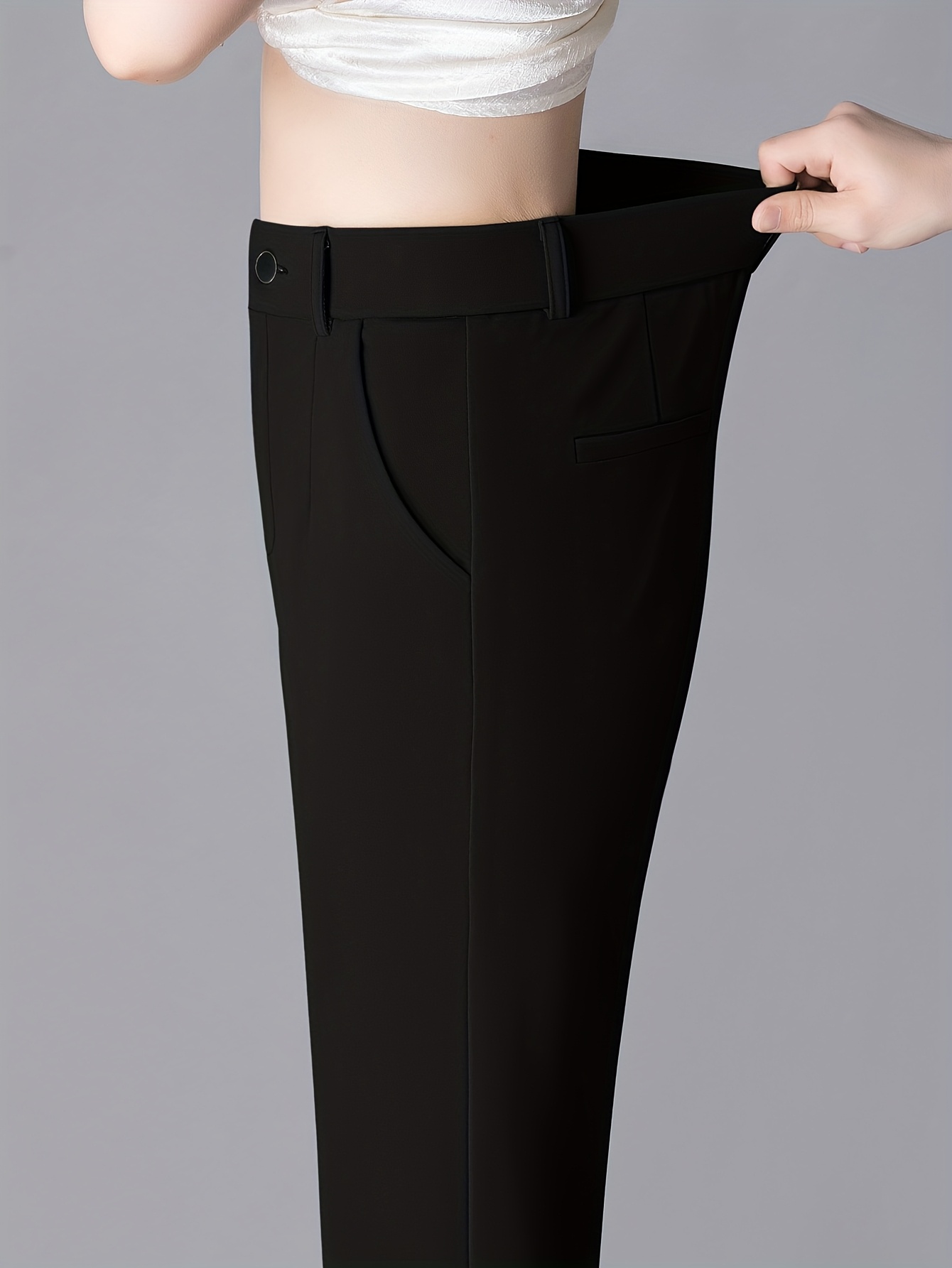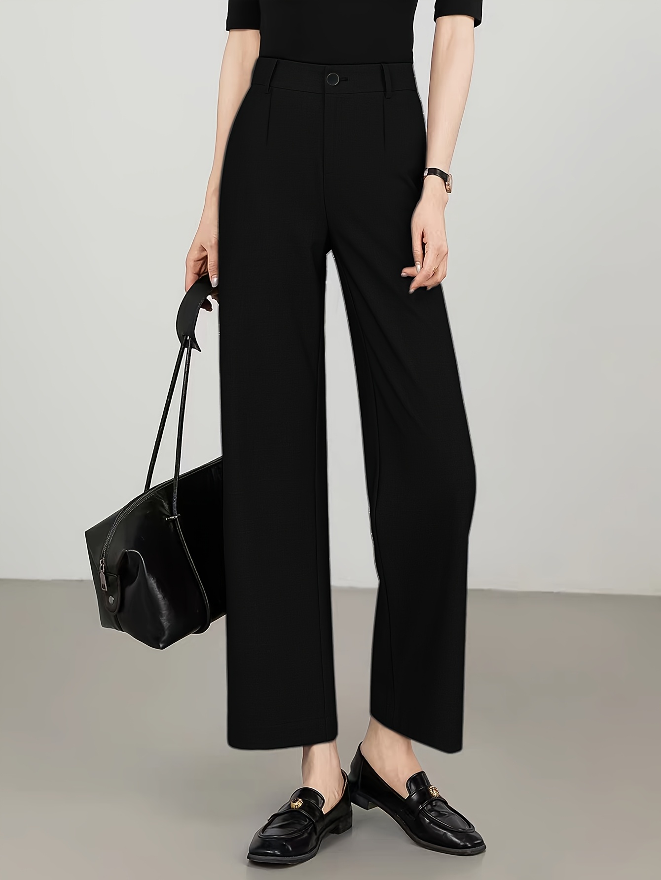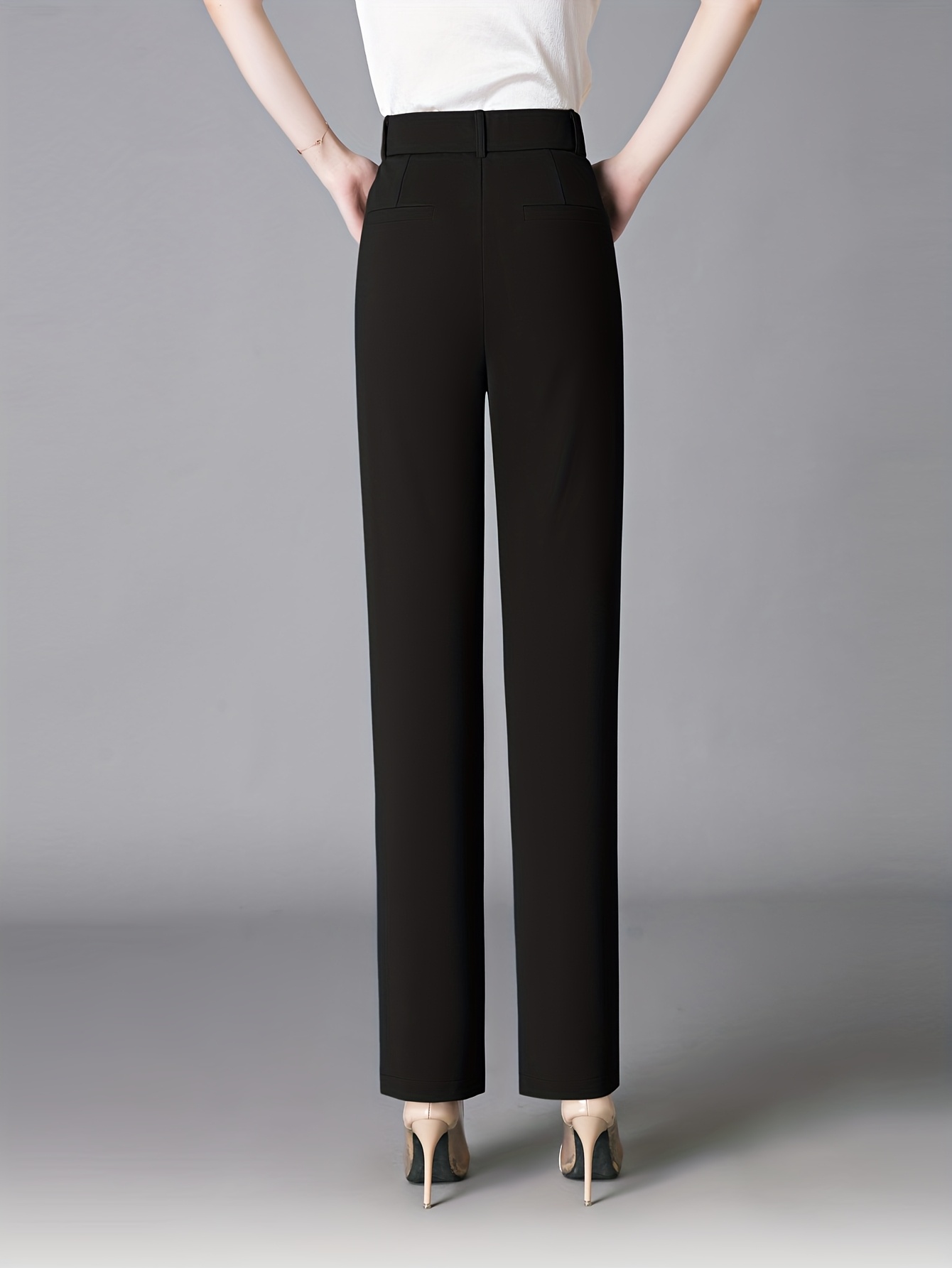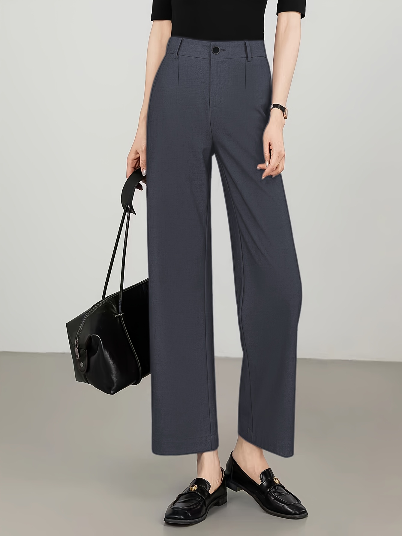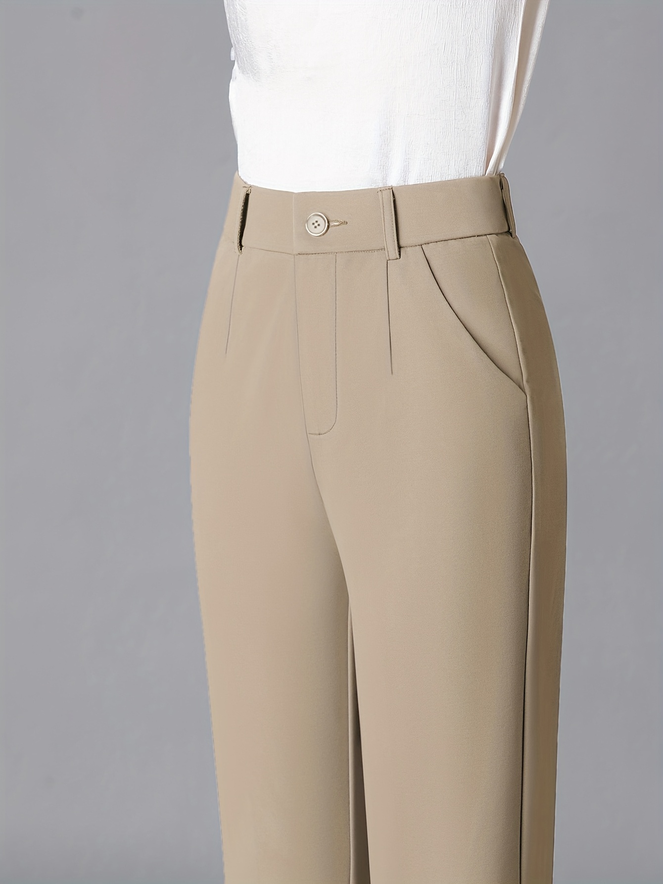 Women'S High-Waisted Slim-Fit Straight-Leg Flared Pants - Elastic Waist with Zipper Closure, Solid Brown Trousers for Work & Casual, Structured Office Pants with Flared Leg, Versatile All-Season Comfort, Easy-Care - Professio