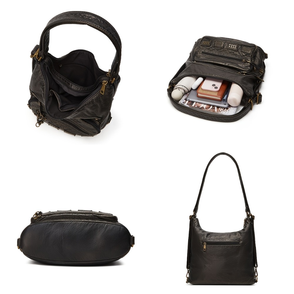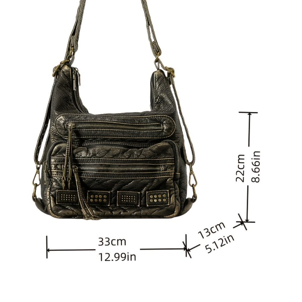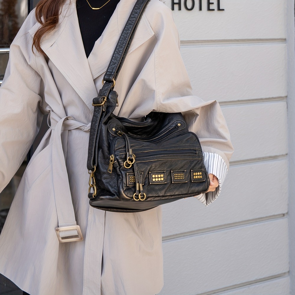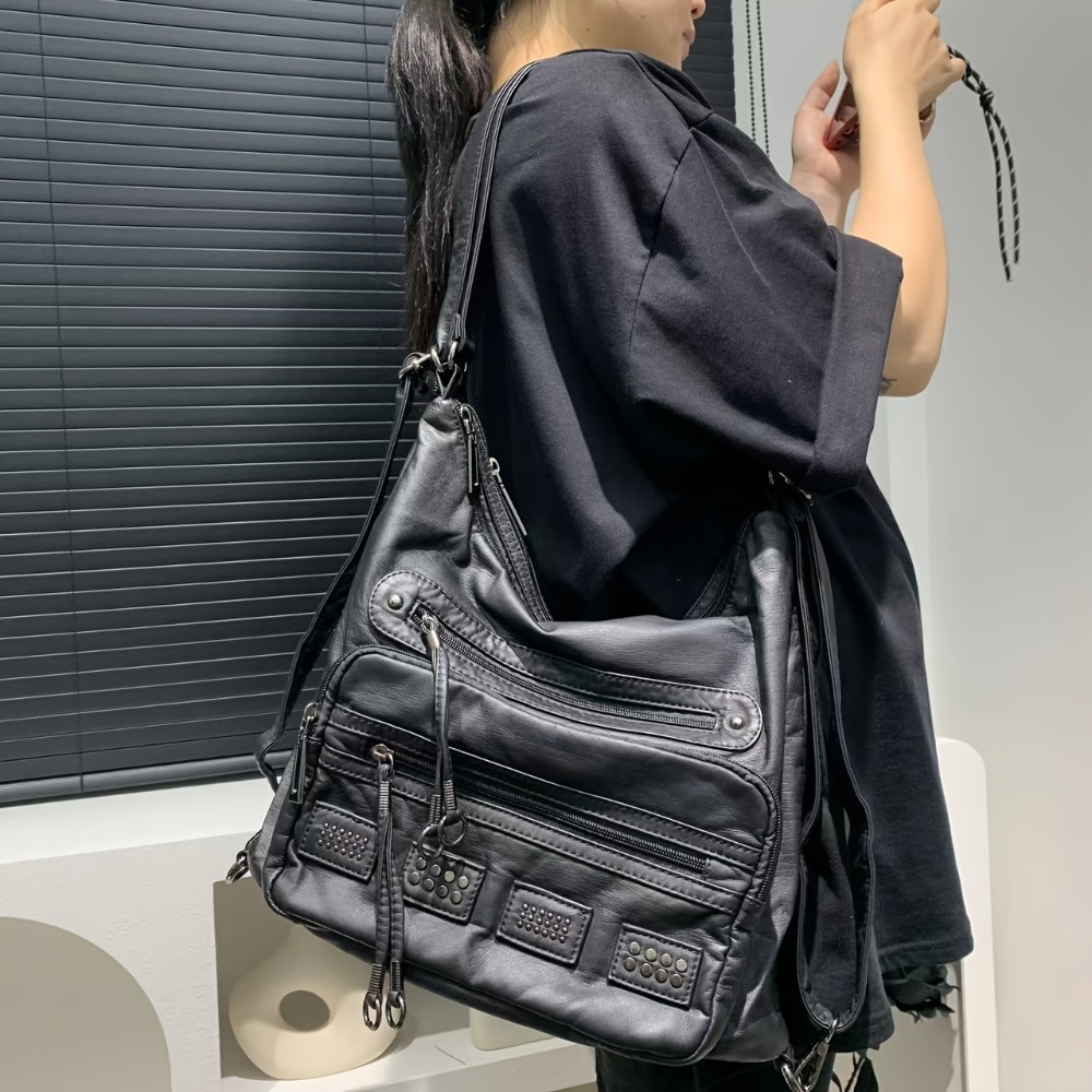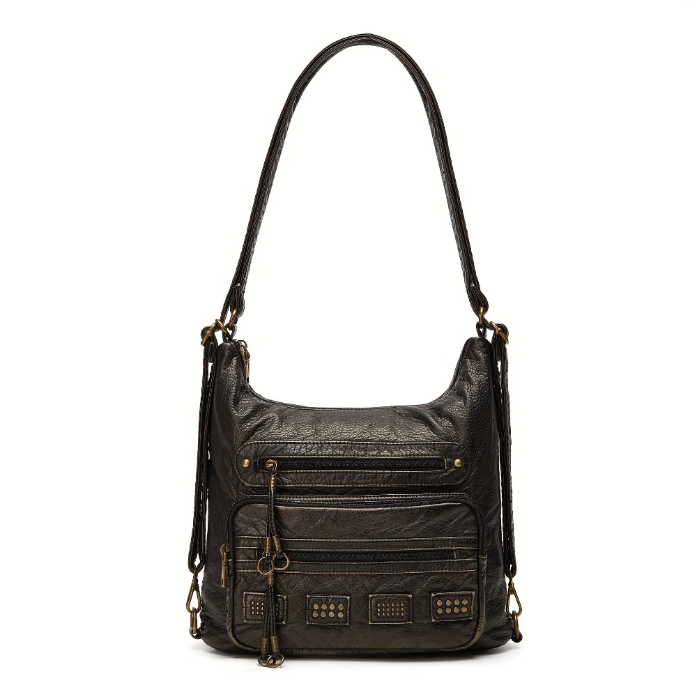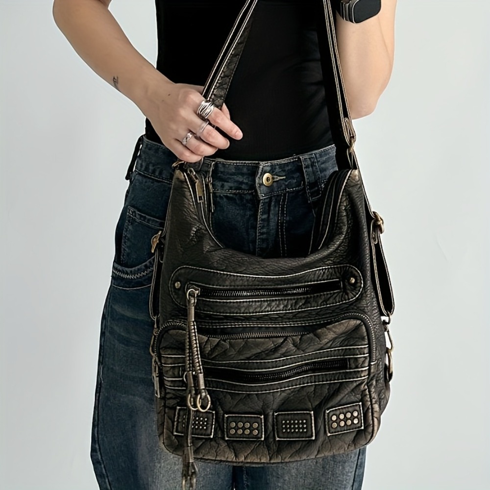 Women's Large Capacity Vintage Rivet Handbag & Shoulder Backpack - Multi-Zipper Compartments, Rivet Accent / Bookbag Suitable for, Travel, - Adjustable Strap, Retro Style (Available in)