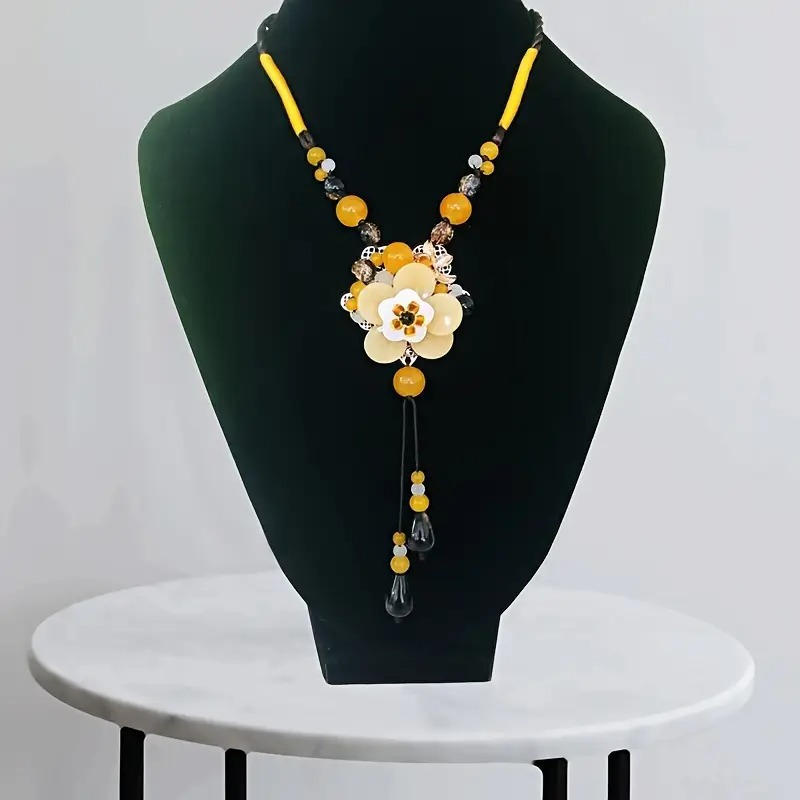 Women'S Retro Bohemian YShape Necklace Handmade Glass Flower and Agate Bead Pendant MultiStrand Long Chain Jewelry for Daily Wear Christmas and Valentine'S Gift YearRound Elegant Accessories Intricate Beadwork