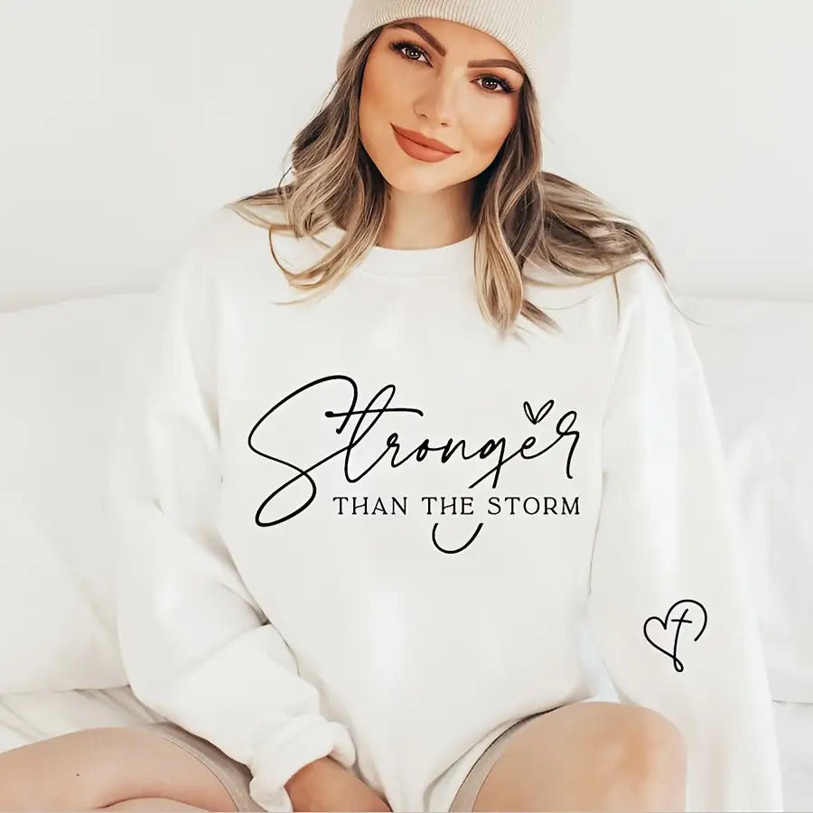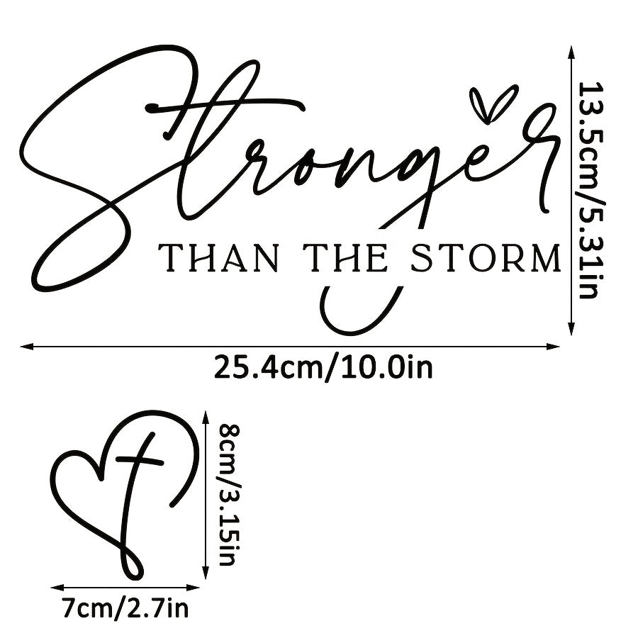 You Are Stronger Than The Storm Iron-On Transfer Stickers - 10 Inch Large Black Vinyl Patches with Elegant Cursive Lettering & Heart Design, Faith-Inspired Christian Symbolism for T-Shirts, Hoodies, Bags, Fabric Crafts - Easy